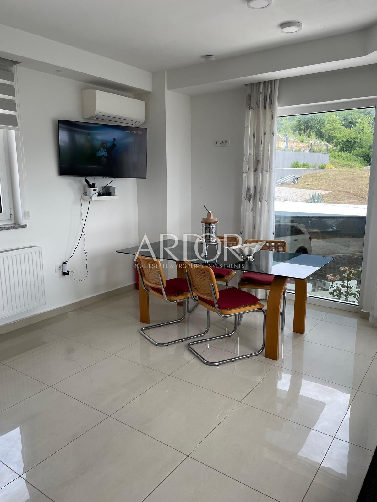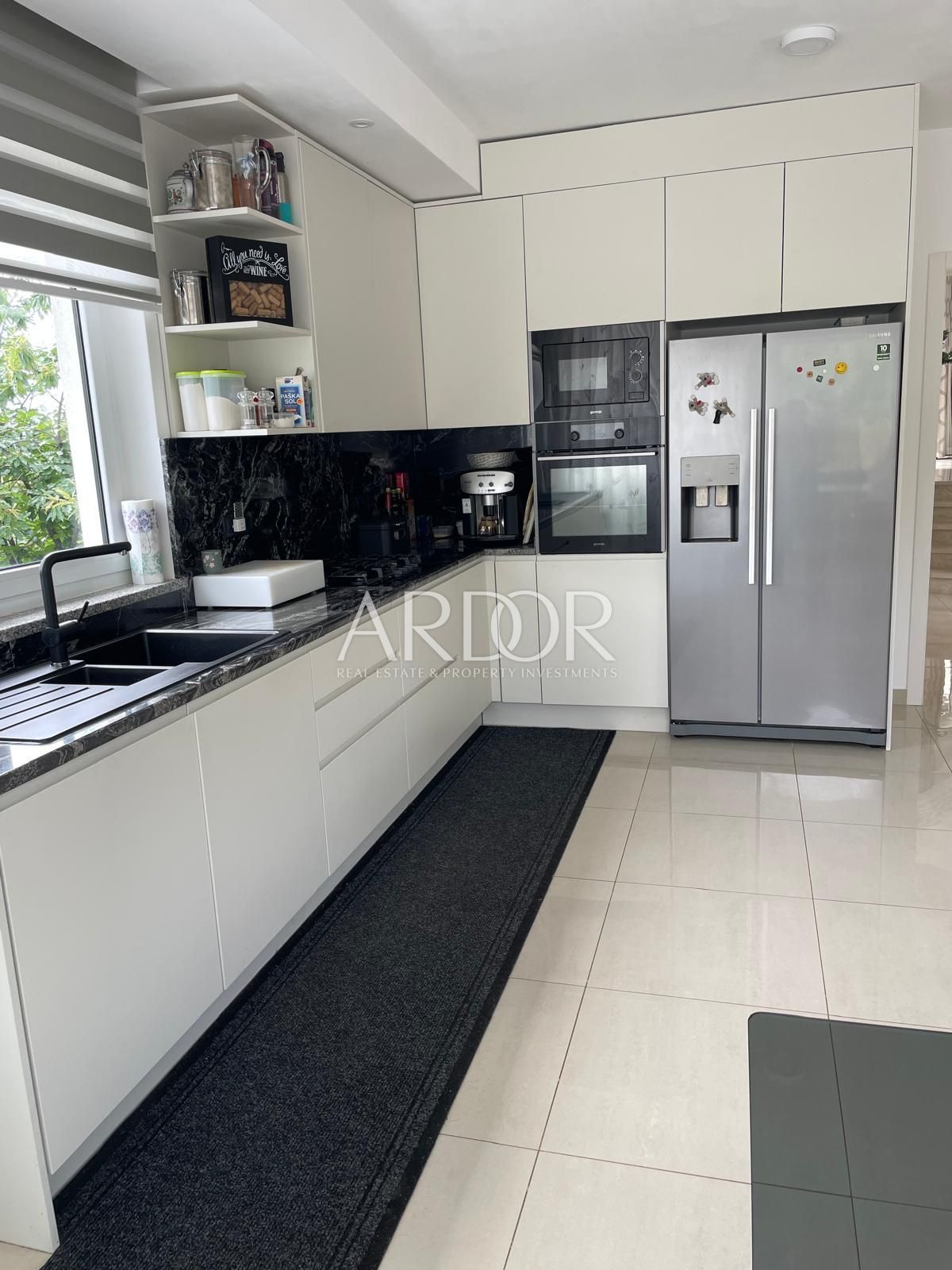 išta iznosi 1800 m², što pruža obilje prostora za dodatne sadržaje ili opuštanje u prirodnom okruženju. Uz kuću dolazi i sedam parkirnih mjesta, što dodatno povećava funkcionalnost i vrijednost ove nekretnine. Idealna kombinacija privatnosti, komfora i investicijskog potencijala.
