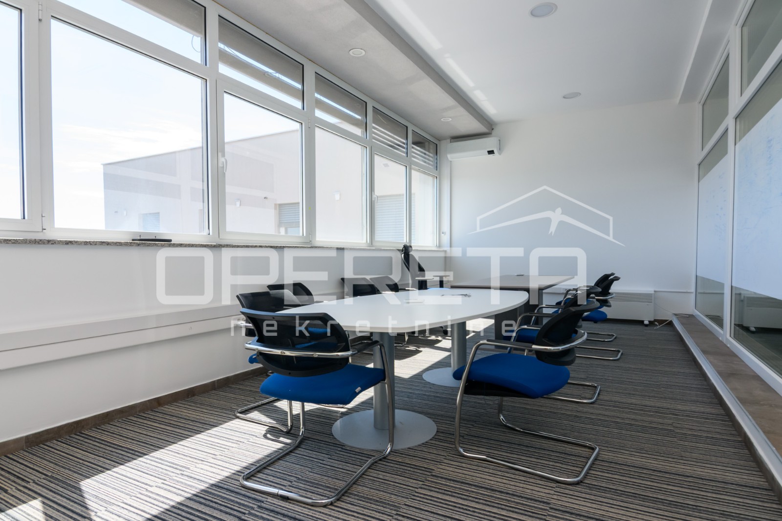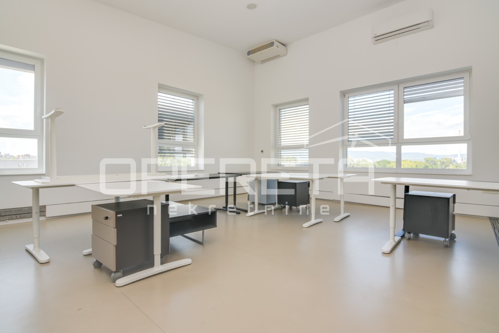 ce dijela, četiri zasebne uredske prostorije, dvije potpuno opremljene kuhinje s blagovaonicom, kupaonice s toaletom, sanitarnim čvorovima te nenatkrivene terase koja prostoru daje dodatnu vrijednost. Prostori su pregrađeni gips-kartonskim zidovima i staklenim stijenama, što omogućuje jednostavne prilagodbe i reorganizaciju rasporeda sukladno potrebama zakupnika. Razvedena IT mreža i klimatizacija osiguravaju ugodno i funkcionalno radno okruženje, dok je zgrada opremljena alarmnim sustavom, kontrolom pristupa i video nadzorom. Zakupnicima su po potrebi na raspolaganju garažna i vanjska parkirna mjesta. Prostor je pogodan za uredske, IT, konzultantske, projektne ili administrativne djelatnosti. Više informacija dostupno je na upit.