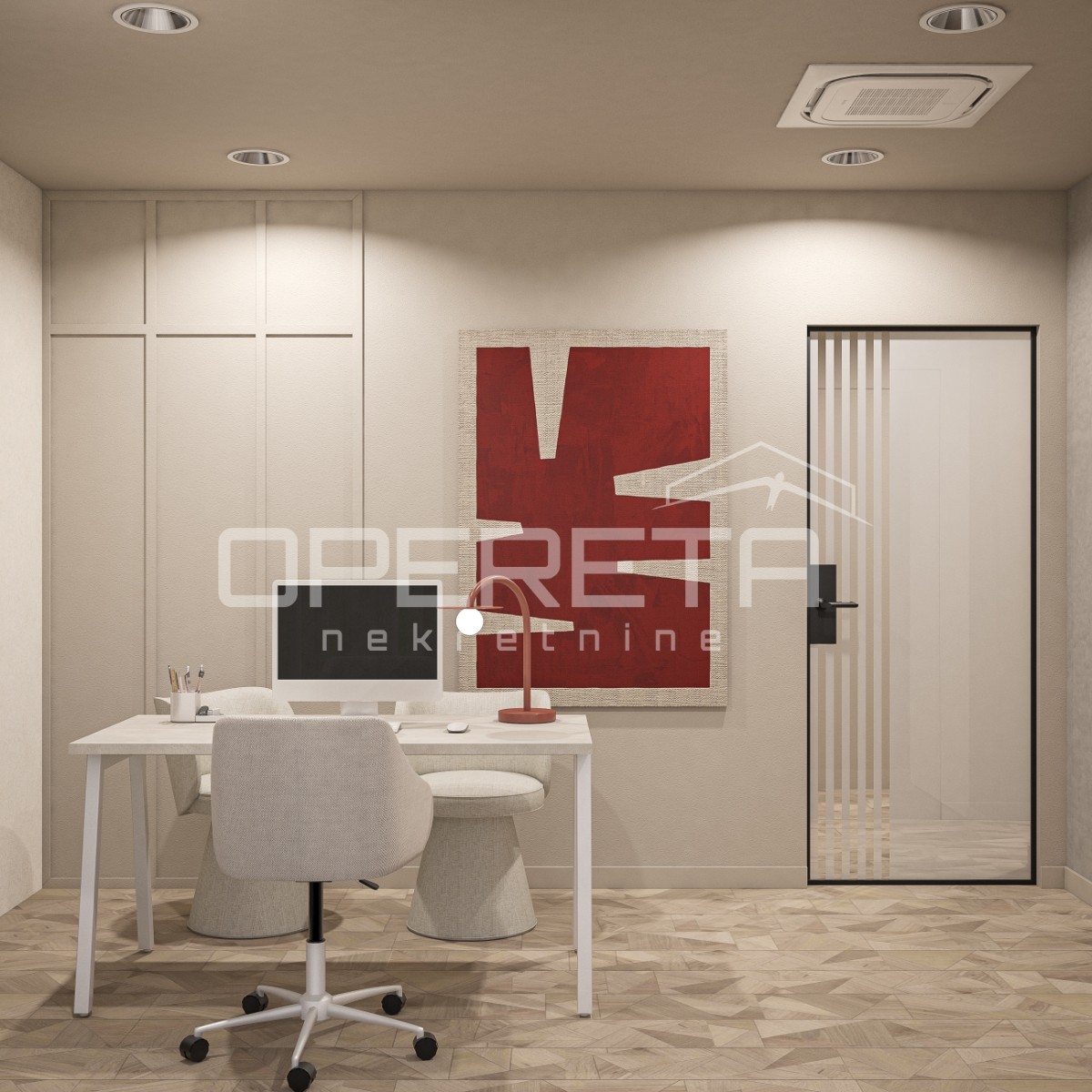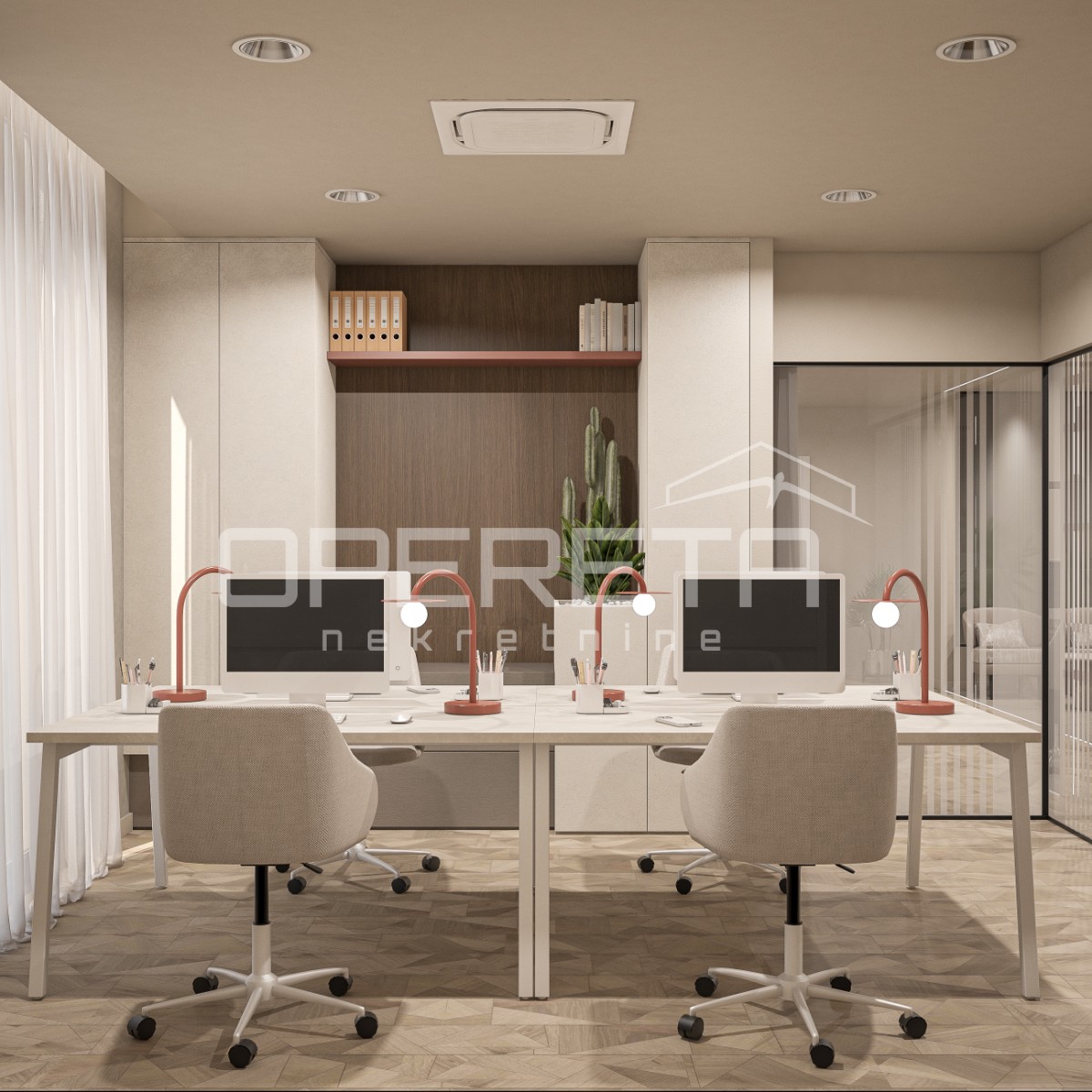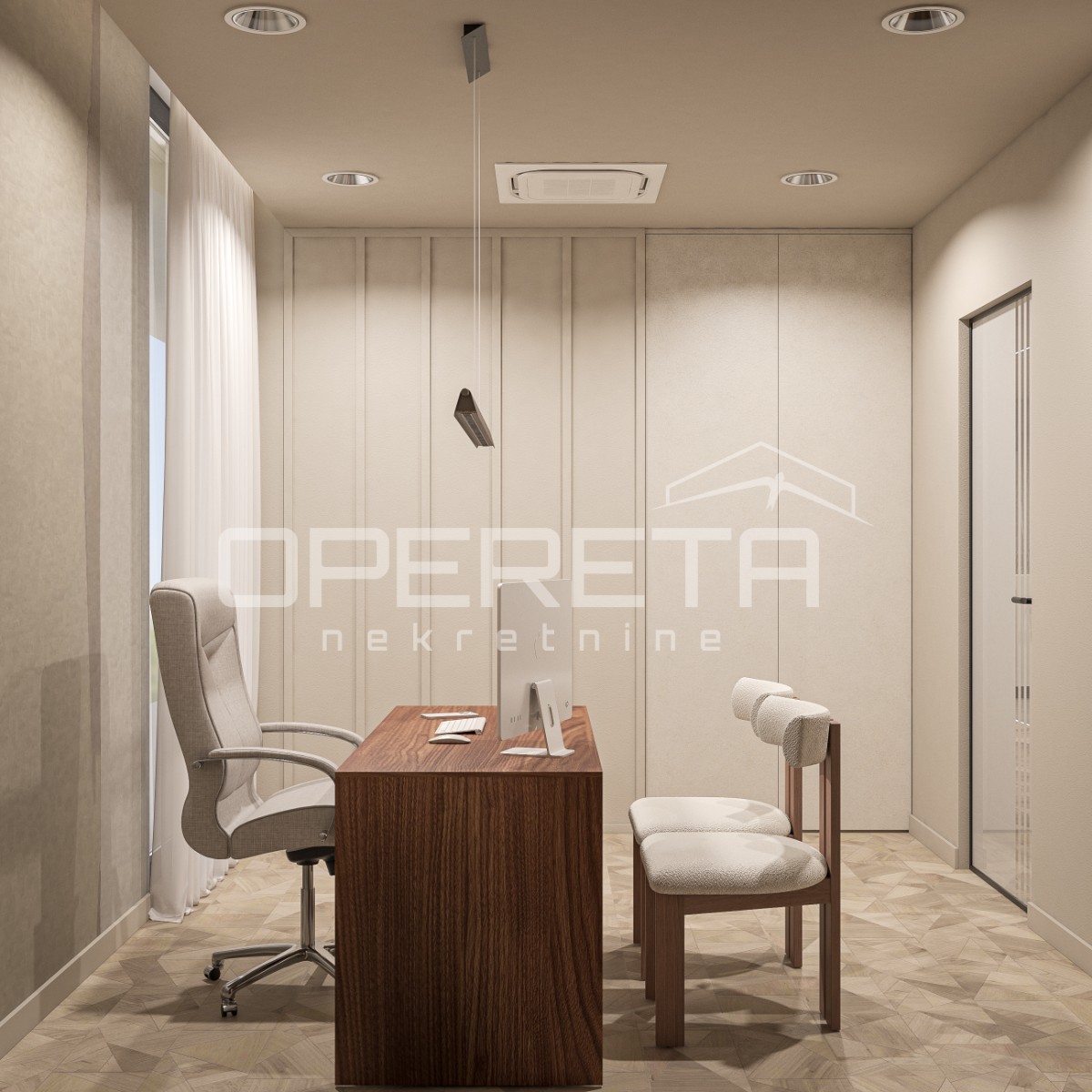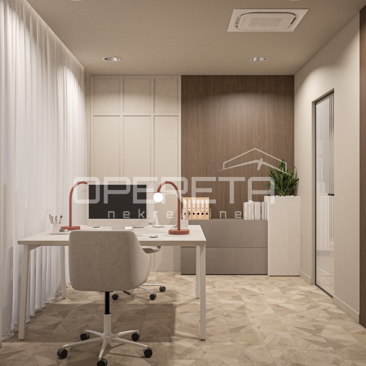 o cijeni od 100 eura plus PDV. Direktan pristup u ured dizalom iz garaže. Prostor se iznajmljuje namješten i opremljen kako je vidljivo na slikama. Odlična lokacija u poslovnoj zoni i blizini javnog prijevoza. Optički internet! Traže se najmoprimci za dugoročan najam!