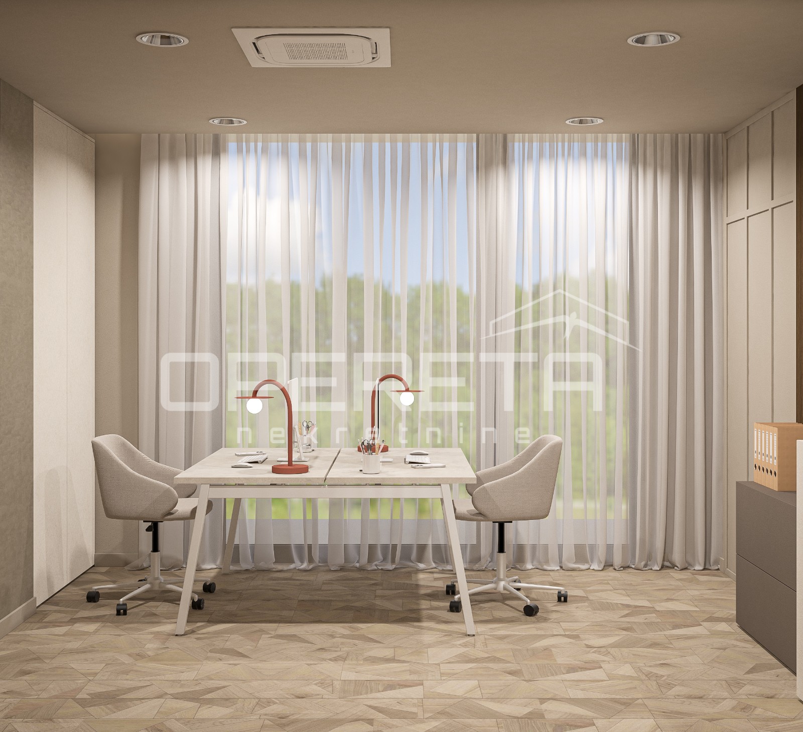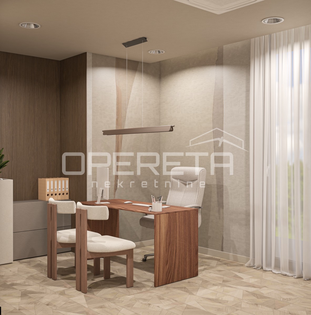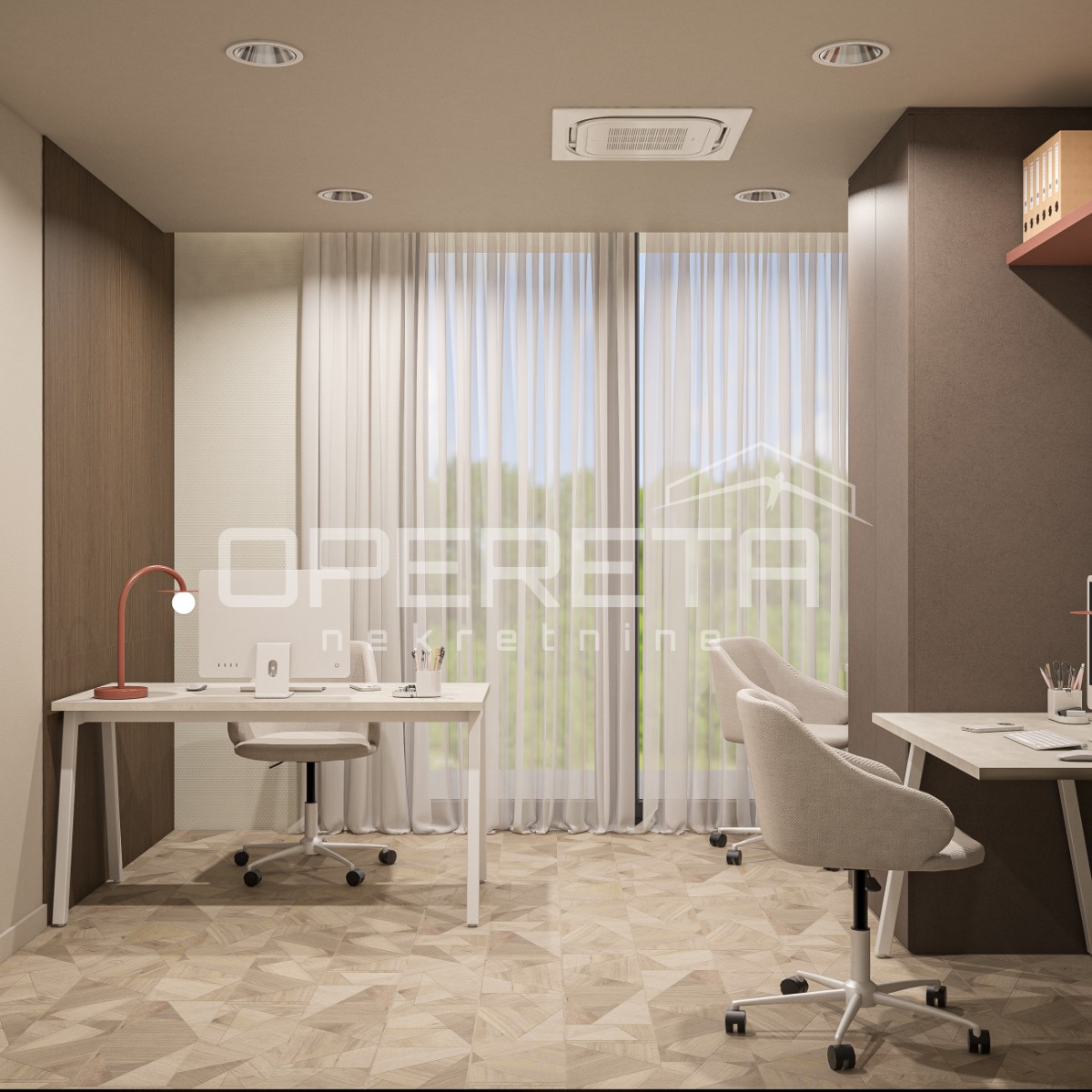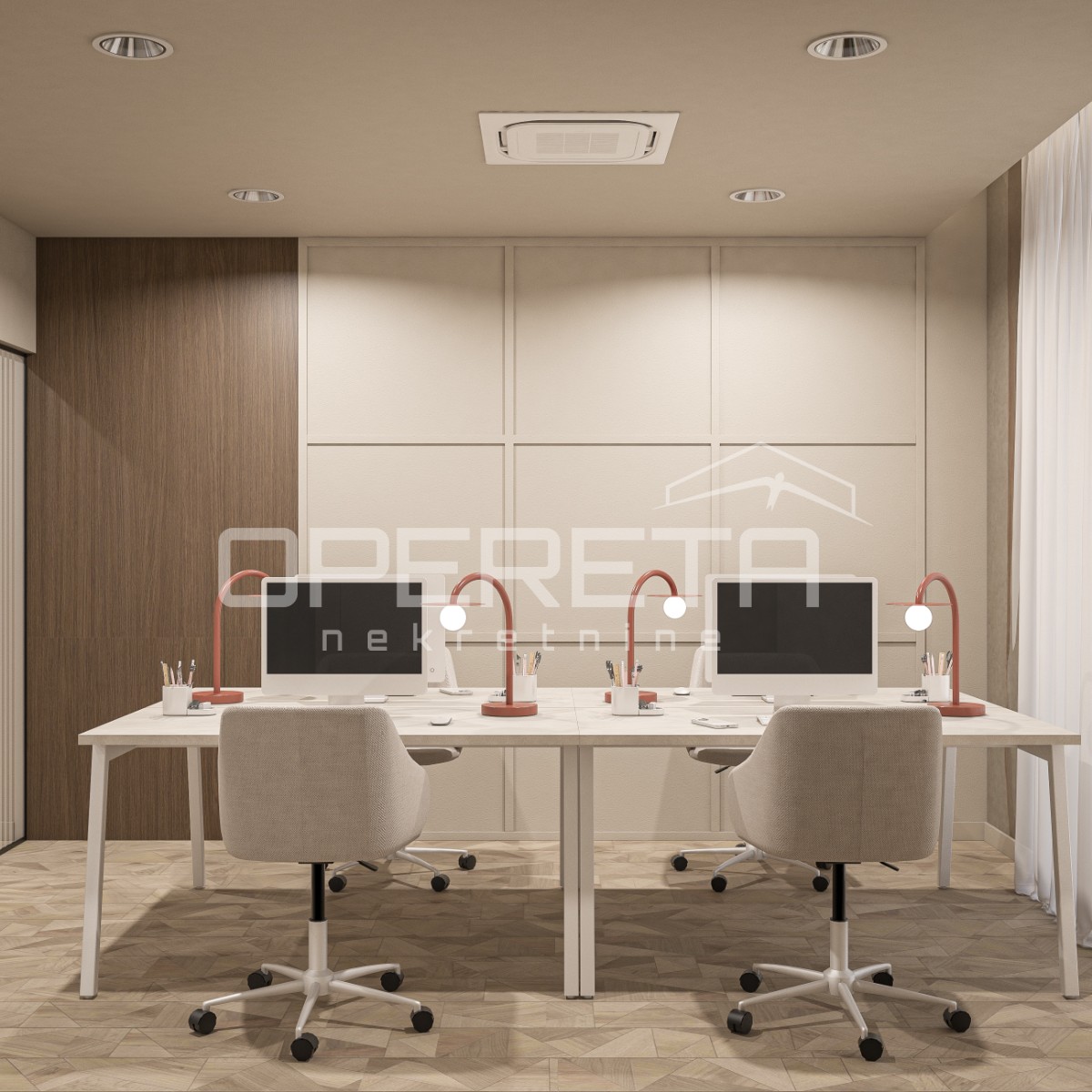 o cijeni od 100 eura plus PDV. Direktan pristup u ured dizalom iz garaže. Prostor se iznajmljuje namješten i opremljen kako je vidljivo na slikama. Odlična lokacija u poslovnoj zoni i blizini javnog prijevoza. Optički internet! Traže se najmoprimci za dugoročan najam!