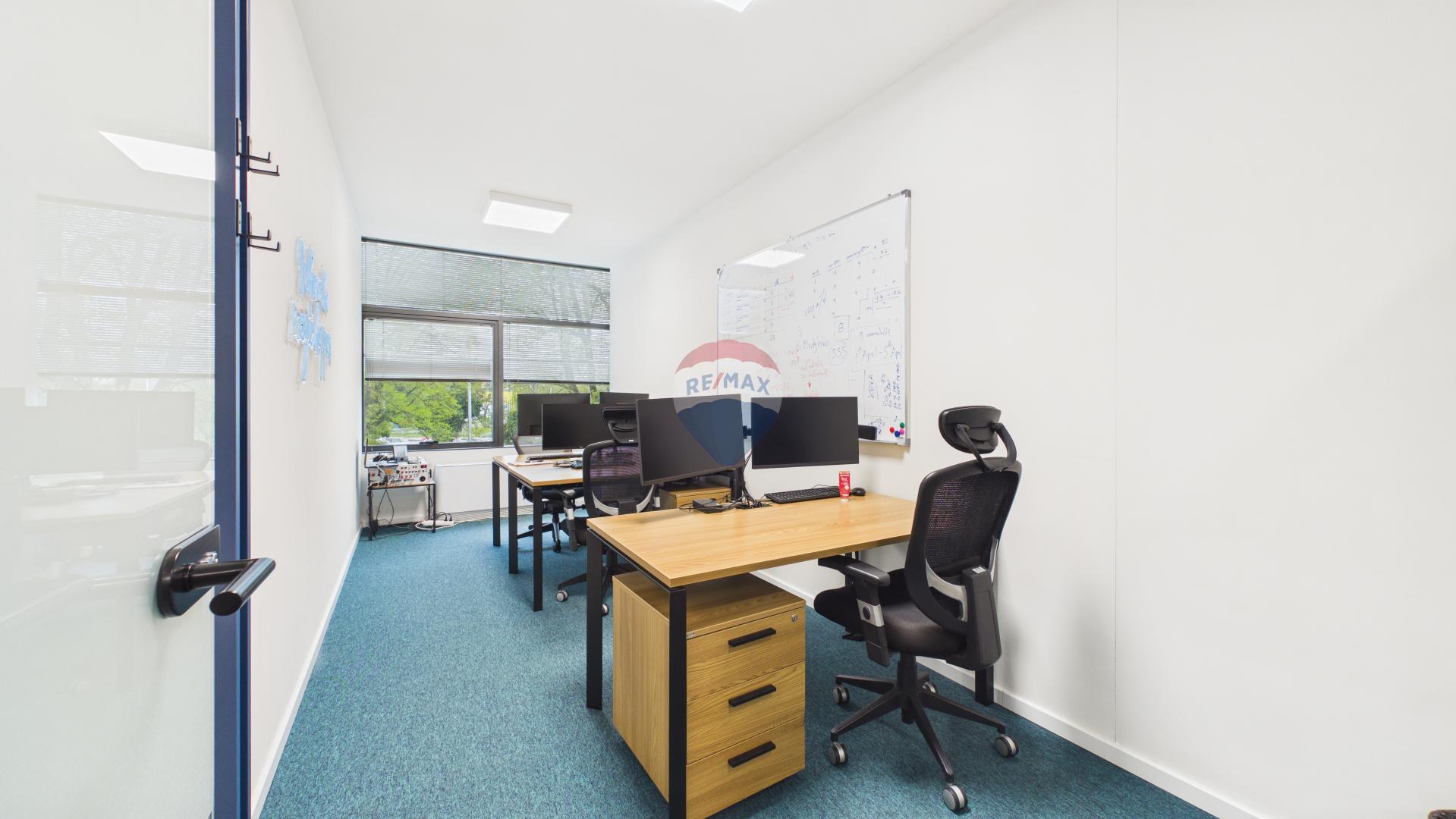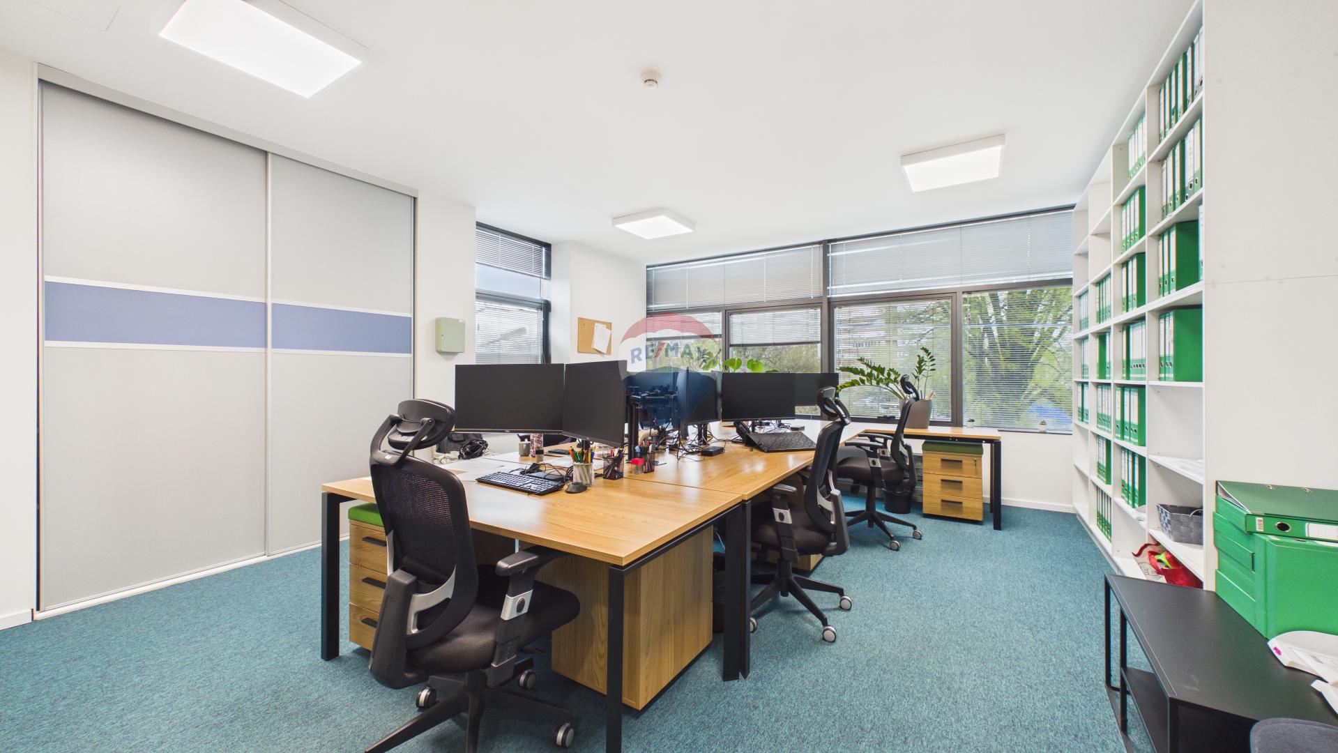 Prostor je smješten u modernoj poslovnoj zgradi iz 2007. godine na prvom katu te se nalazi na atraktivnoj lokaciji u blizini križanja Slavonske avenije i ulice Kruge, što omogućuje izuzetno brz i jednostavan pristup iz svih dijelova Zagreba i okolice. Trenutni korisnik prostora je renomirana IT konzultantska tvrtka, koja dio uredskih kapaciteta zadržava za vlastite potrebe, dok preostali dio daje u najam. U najam se nude četiri zasebne uredske prostorije, uz korištenje zajedničkih sadržaja koji uključuju reprezentativnu recepciju, dva sanitarna čvora, potpuno opremljenu kuhinju, dvije sobe za sastanke te IT/server sobu. Prostor je kompletno renoviran prije godinu i pol dana, moderno je uređen i spreman za korištenje bez dodatnih ulaganja.