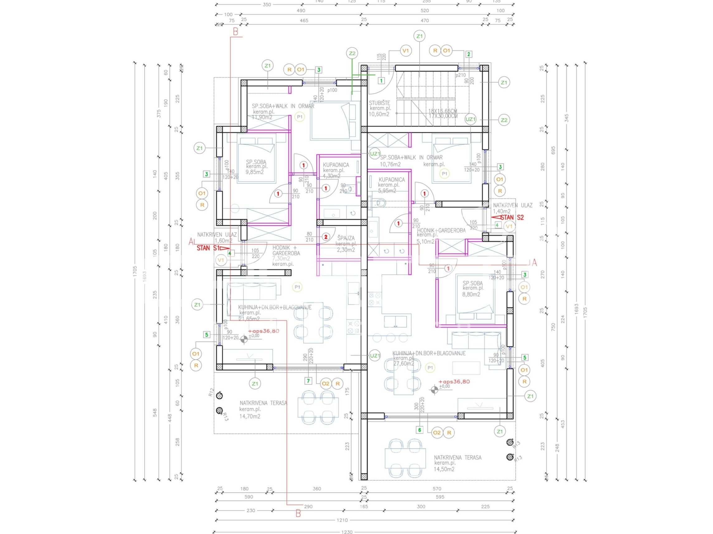 Stan s2 nalazi se u prizemlju zgrade, ima ukupnu površinu 190m2, od čega je NKP 86.07m2.