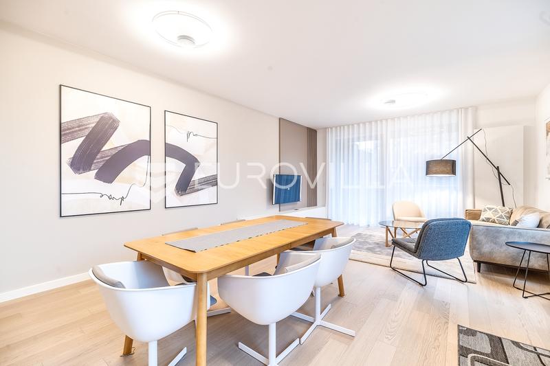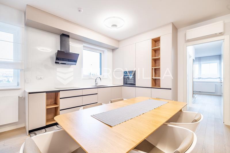 Heinzelova, novogradnja, VMD, ekskluzivan potpuno opremljen četverosoban stan na 1. katu s liftom, neto korisne površine 117 m2, sa 2 parkirna mjesta u garaži 26m2 (13) te ostavom.Prvo useljenje, vrhunski namještaj i oprema.Ukupno obračunski NKP 130m