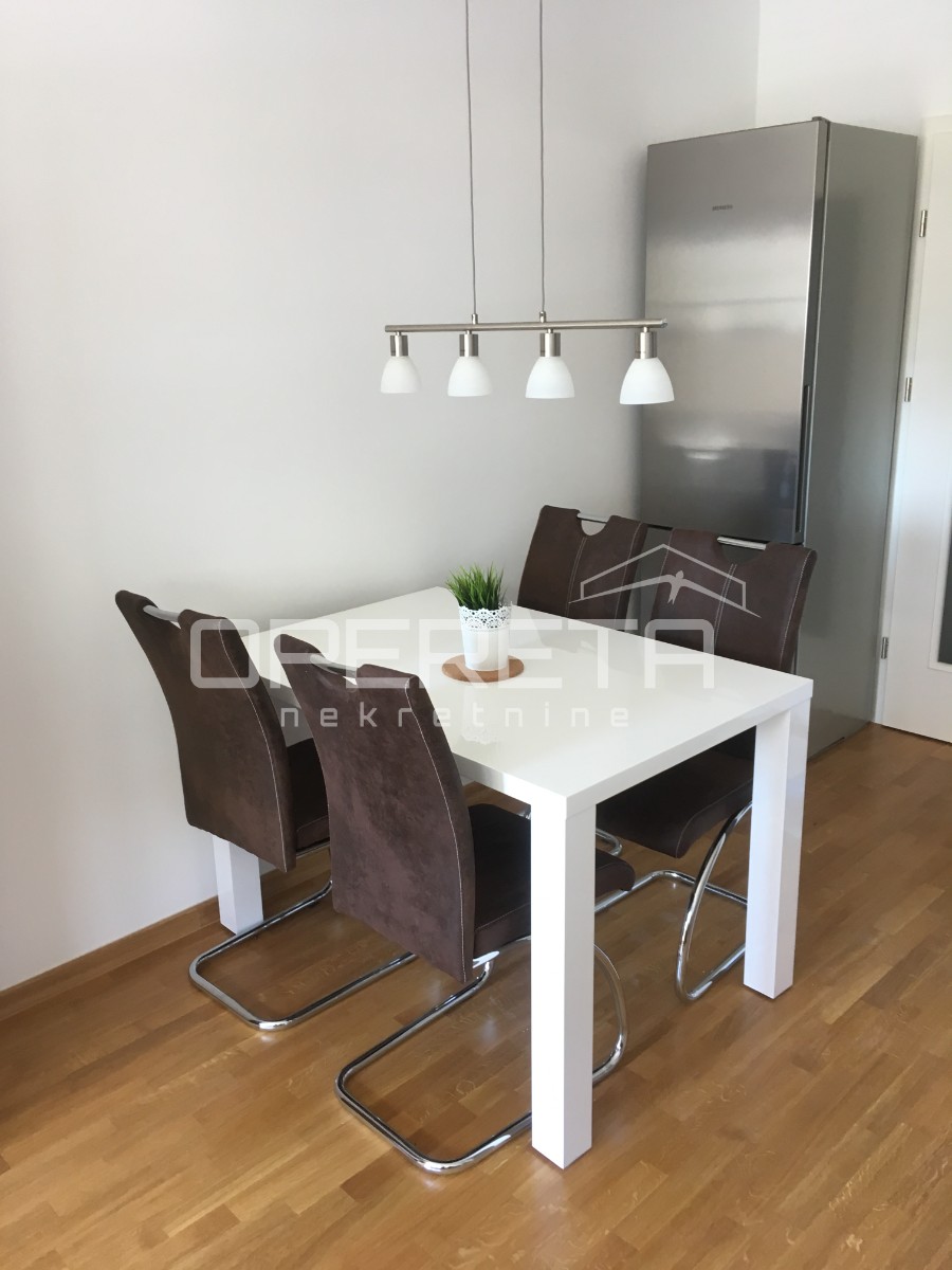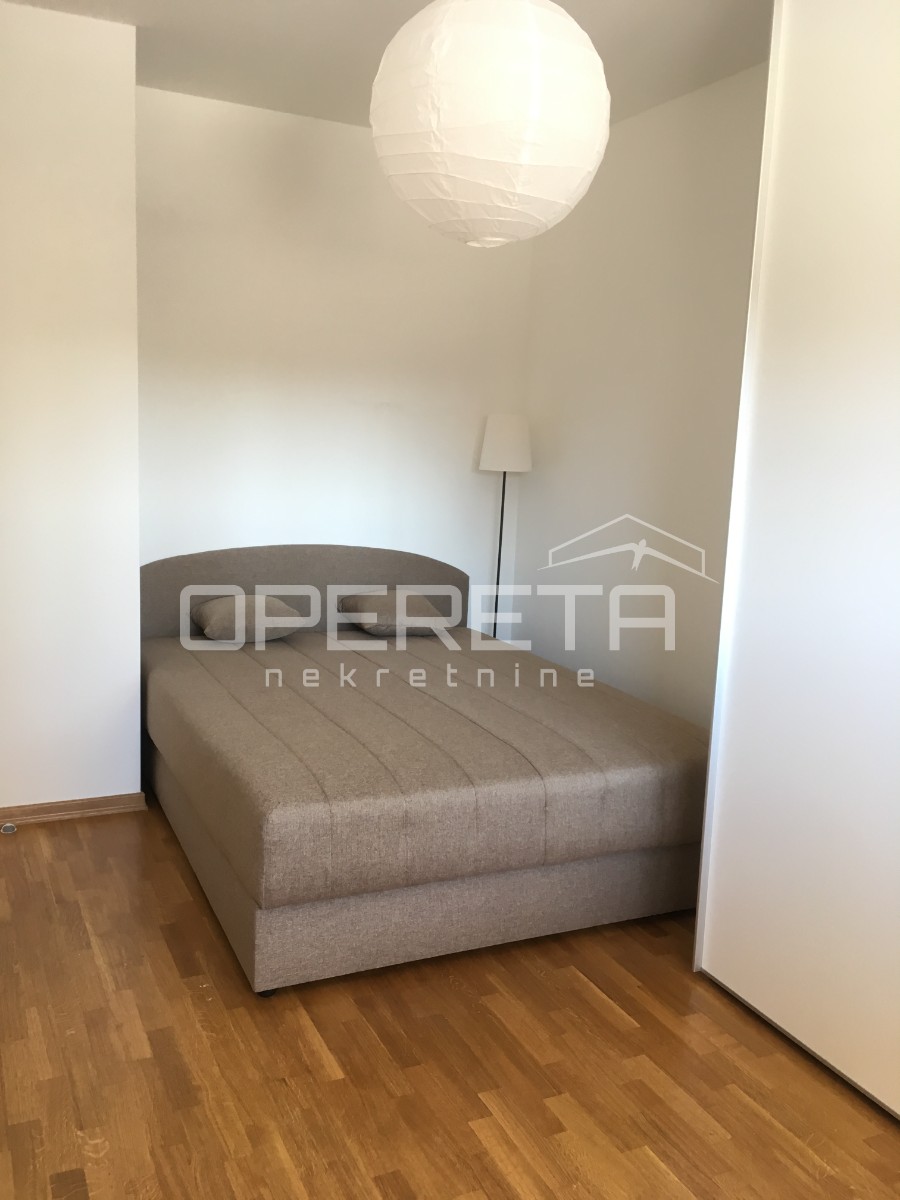 STAN SA GARAŽNIM MJESTOM ZA NAJAM, Trešnjevka, 47m2. Potpuno novi dvosoban stan za najam, odličnog rasporeda soba, na dobroj lokaciji, sa vlastitim garažnim mjestom uključenim u najamninu. Stan se nalazi rezidencijalnoj zgradi (2017. gradnja), potpun