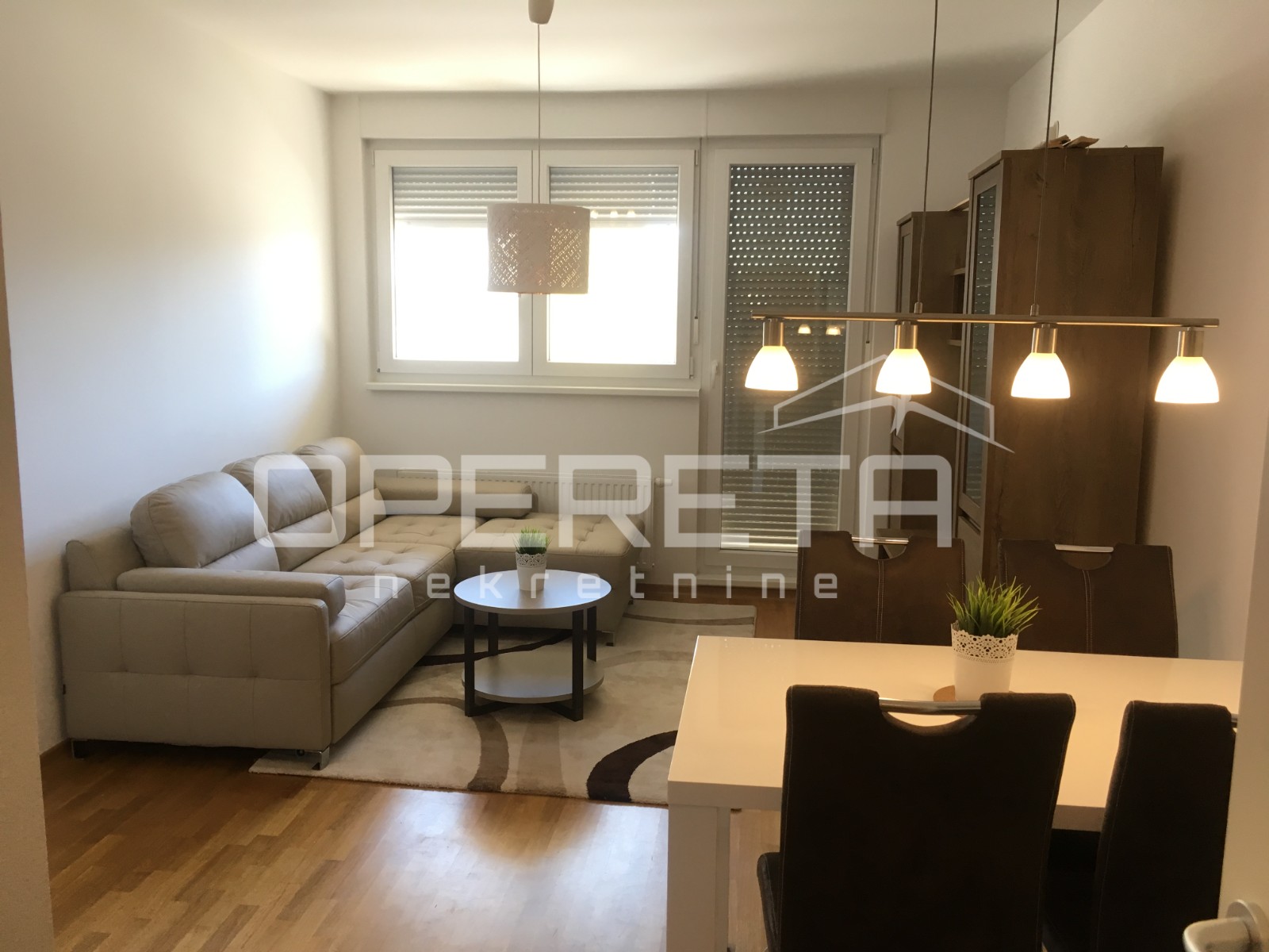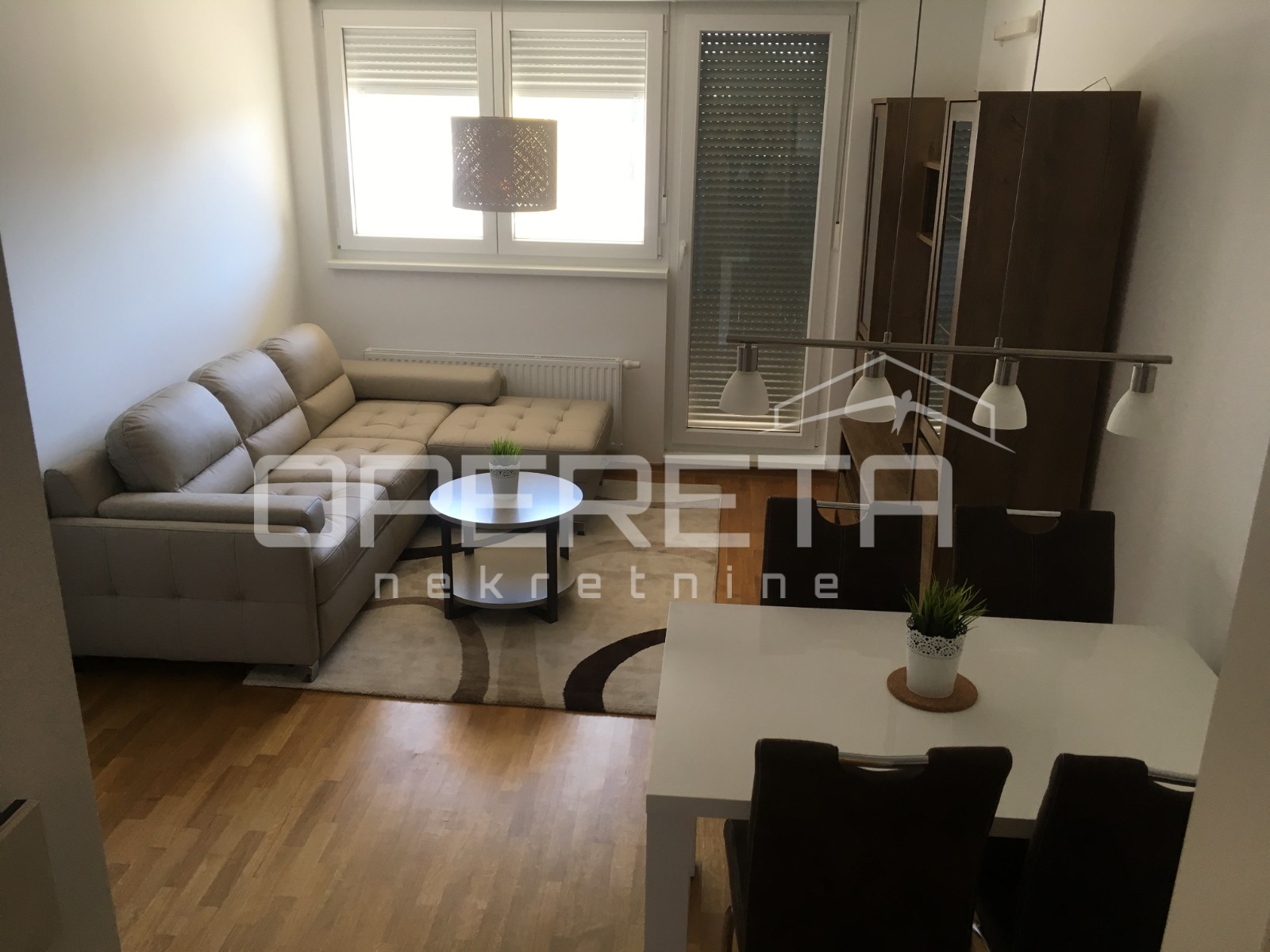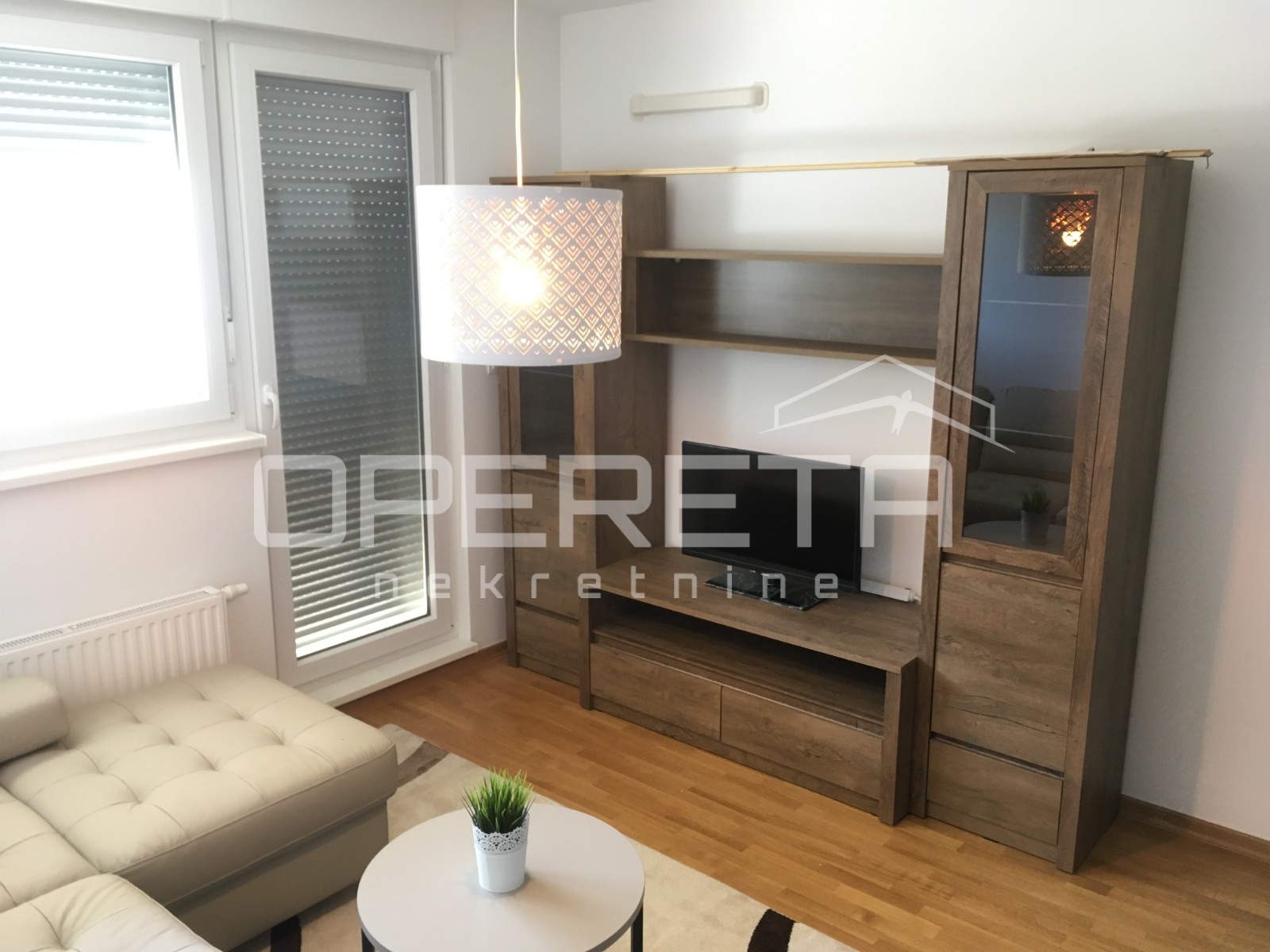 o je namješten, decentnim namještajem te svim potrebnim kućanskim aparatima. Stan se sastoji od ulaznog hodnika, spavaće sobe, dnevnog boravka sa blagovaonicom, kuhinje sa izlazom na lođu od 7m2 te kupaonice. Stanu pripada i spremište.