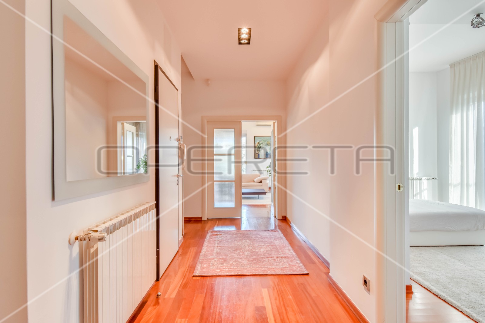 Stan je svijetao, prostran i uređen kvalitetnim namještajem, te mu pripada i garaža.