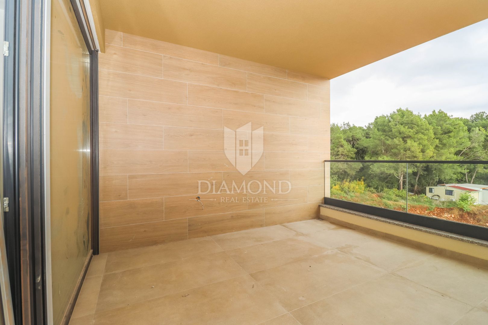 Stan se nalazi na trećem katu moderne stambene zgrade koja je dio novog kompleksa. Zgrada je u završnoj fazi gradnje – izvode se završni radovi, što budućem vlasniku omogućuje da već sada planira useljenje nakon ishođenja uporabne dozvole i organizira uređenje interijera po vlastitom ukusu. Ukupna neto korisna površina stana iznosi cca 83,20 m². Tlocrtno je odlično organiziran i sastoji se od ulaznog hodnika, kupaonice, ostave, dvije spavaće sobe te prostranog open-space dnevnog dijela u kojem se nalaze kuhinja, blagovaonica i dnevni boravak. Iz dnevnog boravka izlazi se na djelomično natkrivenu terasu koja je poseban adut ove nekretnine. Terasa je dovoljno prostrana za blagovaonski stol i lounge kutak, savršena za jutarnju kavu uz pogled na zelenilo, rad od kuće na otvorenom ili druženja s obitelji i prijateljima. Okruženost šumom i udaljenost svega nekoliko minuta vožnje do plaže pružaju rijetko spojiv osjećaj privatnosti, prirode i blizine mora.