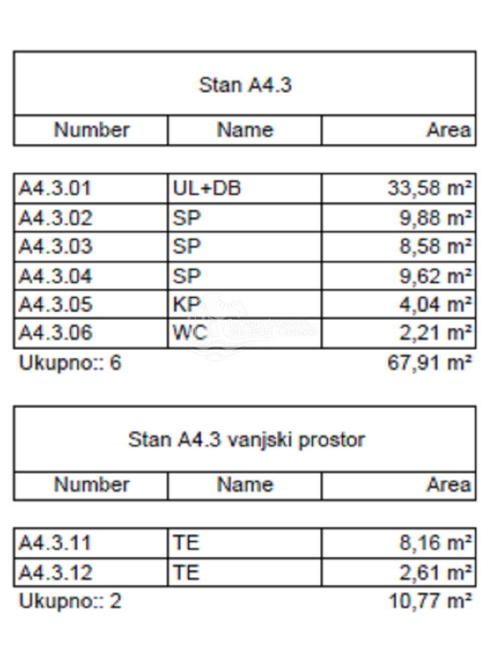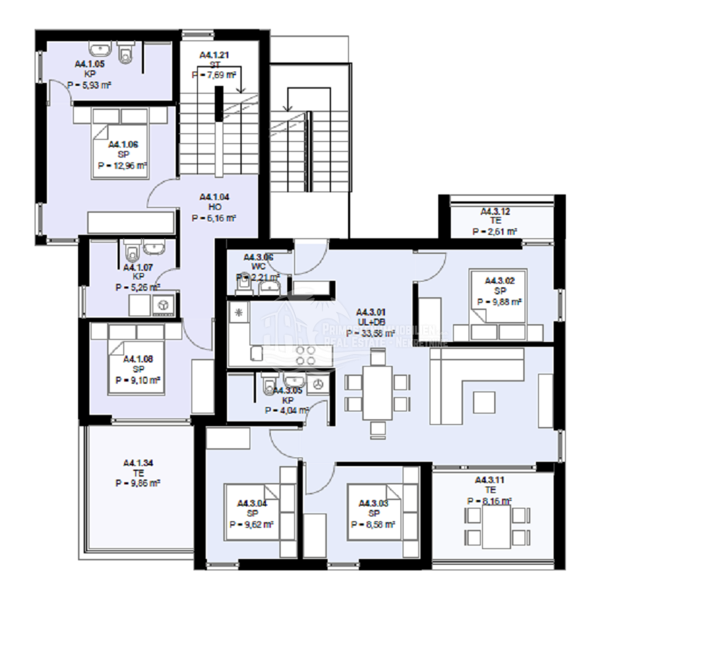 alnu udobnost i funkcionalnost, a sastoji se od prostranog dnevnog boravka s kuhinjom i blagovaonicom, tri spavaće sobe, kupaonice, WC-a, hodnika te dvije terase koje omogućuju uživanje u vanjskom prostoru tijekom cijele godine. Sa terase se pruža prekrasan pogled na more. Stanu pripada jedno vanjsko parkirno mjesto. Planirani završetak gradnje je u proljeće 2027 godine.