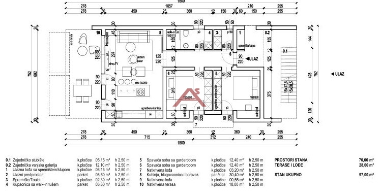 Zadar, Vruljica, moderan dvosoban stan s dvije terase, 6. kat, 87,84 m², 250 m od mora