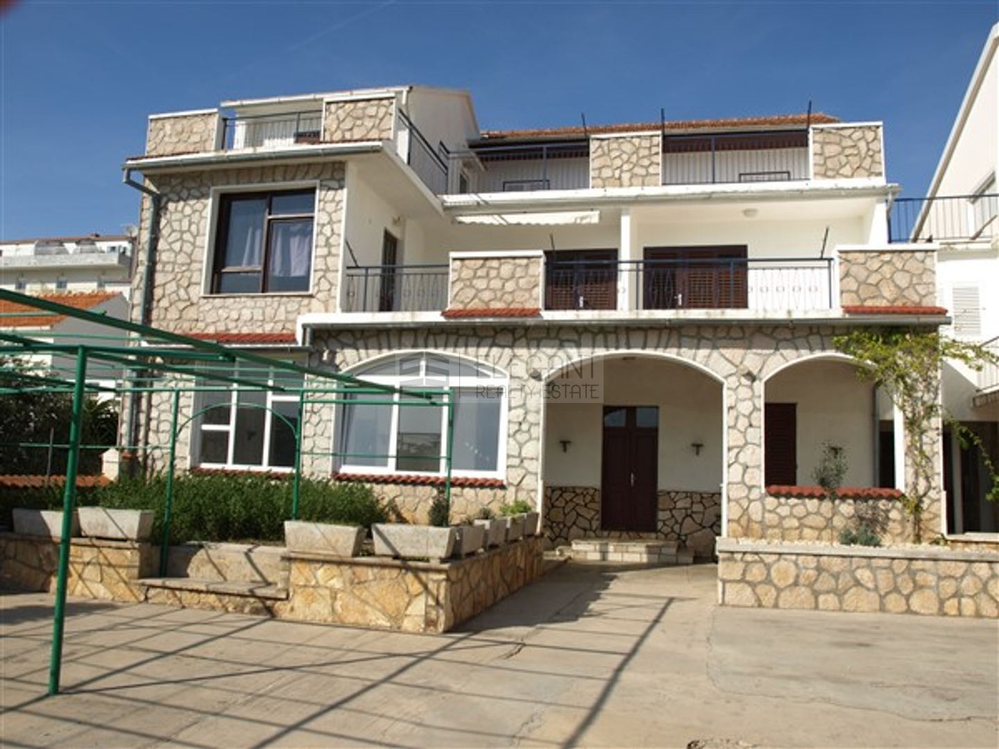 Zum Verkauf steht ein freistehendes Haus in der malerischen Ortschaft Tisno, mit einer Fläche von 621,29 m². Diese geräumige Immobilie zeichnet sich durch ihre einzigartige Lage am Meer aus und bietet einen hervorragenden Blick auf die Adria, was sie