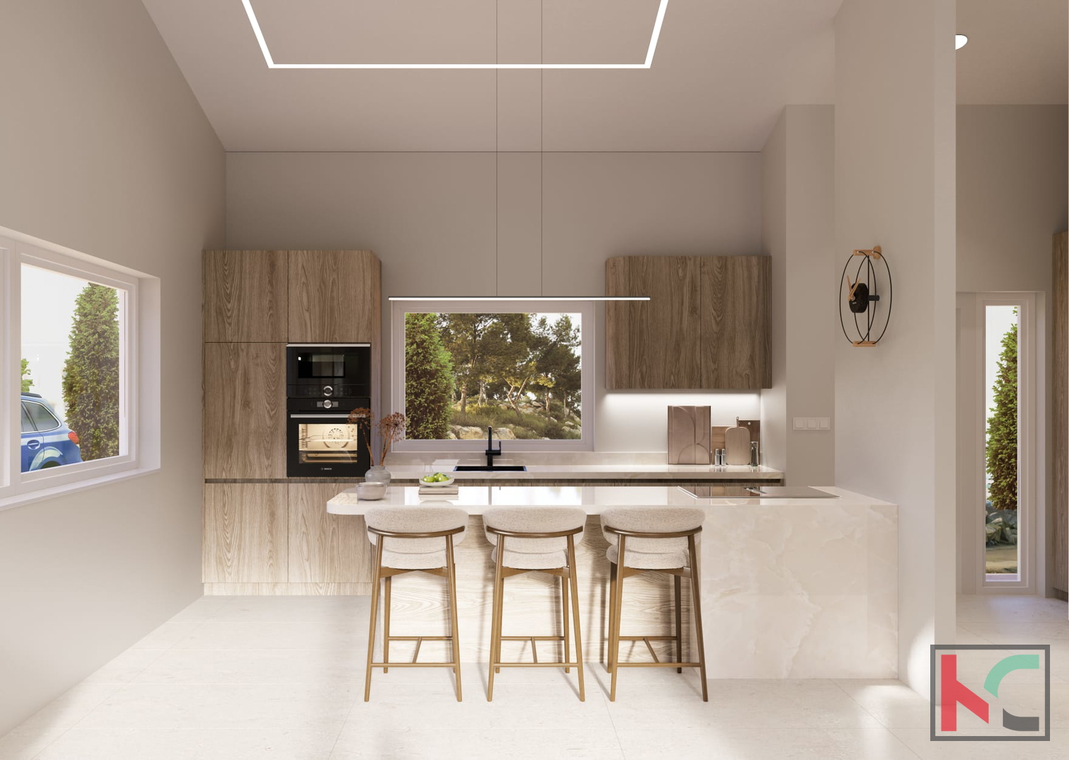 Zum Verkauf steht ein Haus mit drei Wohneinheiten und einer Gesamtfläche von 274,9 m2. Es befindet sich in der istrischen Gemeinde Kaštelir, unweit von Poreč. Neu erbaut im Jahr , stellt diese Immobilie eine hervorragende Gelegenheit für diejenigen dar, die ein geräumiges und modernes Zuhause an einer ruhigen Lage an der istrischen Küste suchen – mit zusätzlicher Einnahmequelle oder als Kapitalanlage. Das eingeschossige Gebäude erstreckt sich auf einem Grundstück von m2, was ausreichend Privatsphäre und Platz für vielfältige Aktivitäten im Freien bietet. Die Südausrichtung ermöglicht reichlich Tageslicht den ganzen Tag über, wodurch die Wärme und Luftigkeit des Interieurs zusätzlich betont werden. Jede Wohneinheit besteht aus einem Eingangsbereich, WC, einer offenen Küche mit Wohnzimmer, drei Schlafzimmern, einem Badezimmer sowie einem Abstellraum. Insgesamt neun Schlafzimmer machen diese Immobilie besonders geeignet für größere Familien oder für diejenigen, die zusätzlichen Raum für Gäste oder Arbeitsbereiche wünschen. Die Beheizung erfolgt über Strom, Fußbodenheizung, Klimaanlagen und die Möglichkeit zur Nutzung von Festbrennstoffen, was eine Anpassung an persönliche Vorlieben und Energieeffizienz ermöglicht. Hohe Decken vermitteln ein Gefühl von Großzügigkeit und Luxus. Die Lage des Hauses unweit von Poreč bietet einfachen Zugang zu allen wichtigen Einrichtungen – in der Nähe befinden sich Geschäfte, Schulen, Verkehrsanbindungen und weitere tägliche Annehmlichkeiten. Die ruhige Lage garantiert einen angenehmen Aufenthalt, während die Größe und Funktionalität des Raumes zahlreiche Gestaltungsmöglichkeiten nach den Wünschen der zukünftigen Eigentümer bieten. Es besteht die Möglichkeit, jede Wohneinheit separat zu erwerben. Für weitere Informationen oder zur Vereinbarung eines Besichtigungstermins kontaktieren Sie uns gerne. Dieses moderne Dreifamilienhaus in Poreč ist die ideale Wahl für eine sichere Investition und ein komfortables Leben.