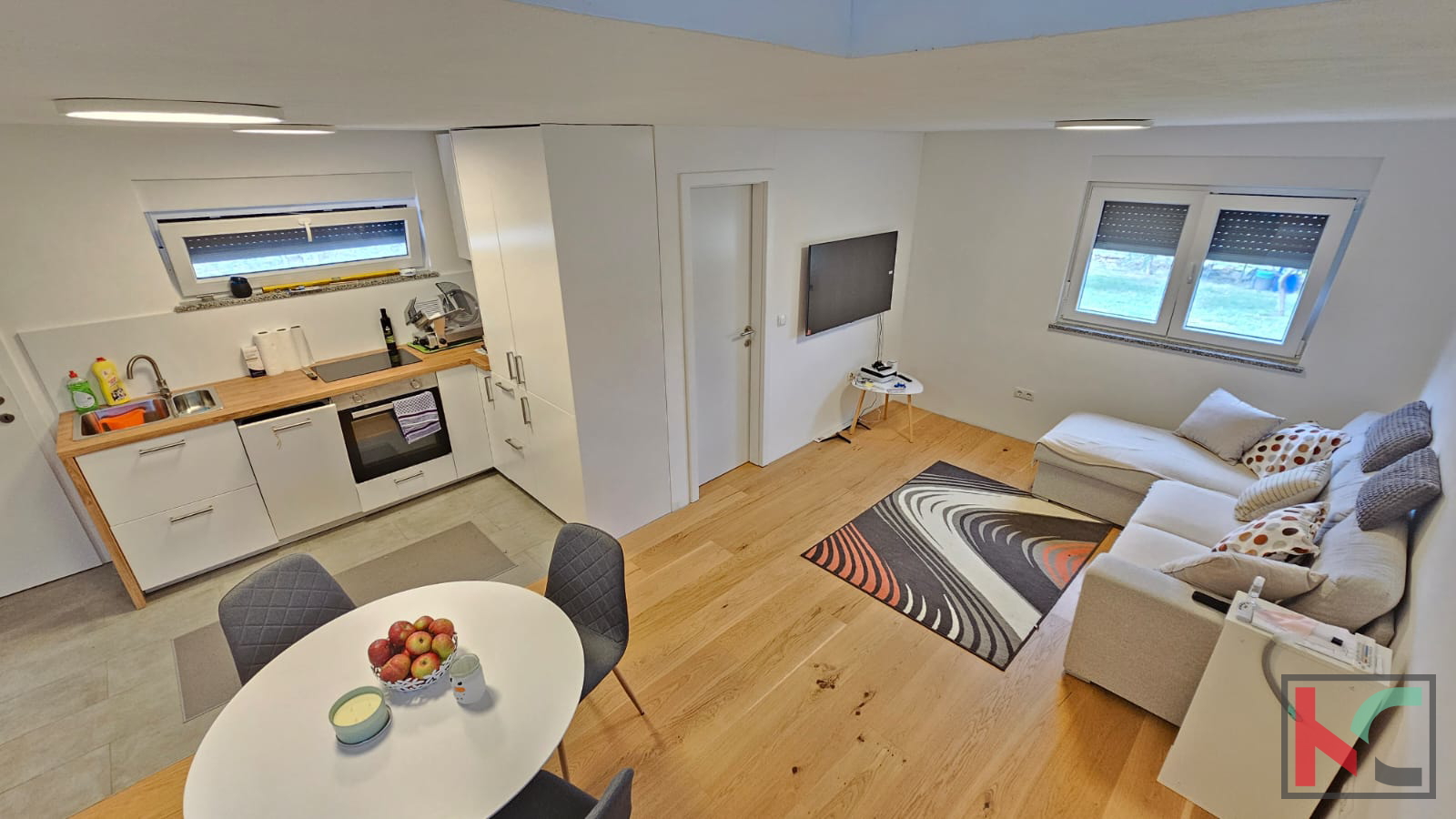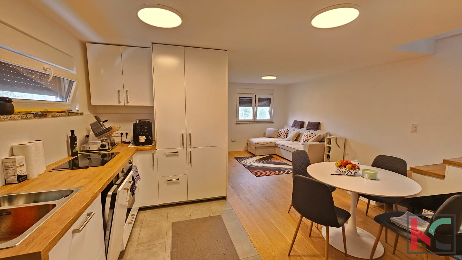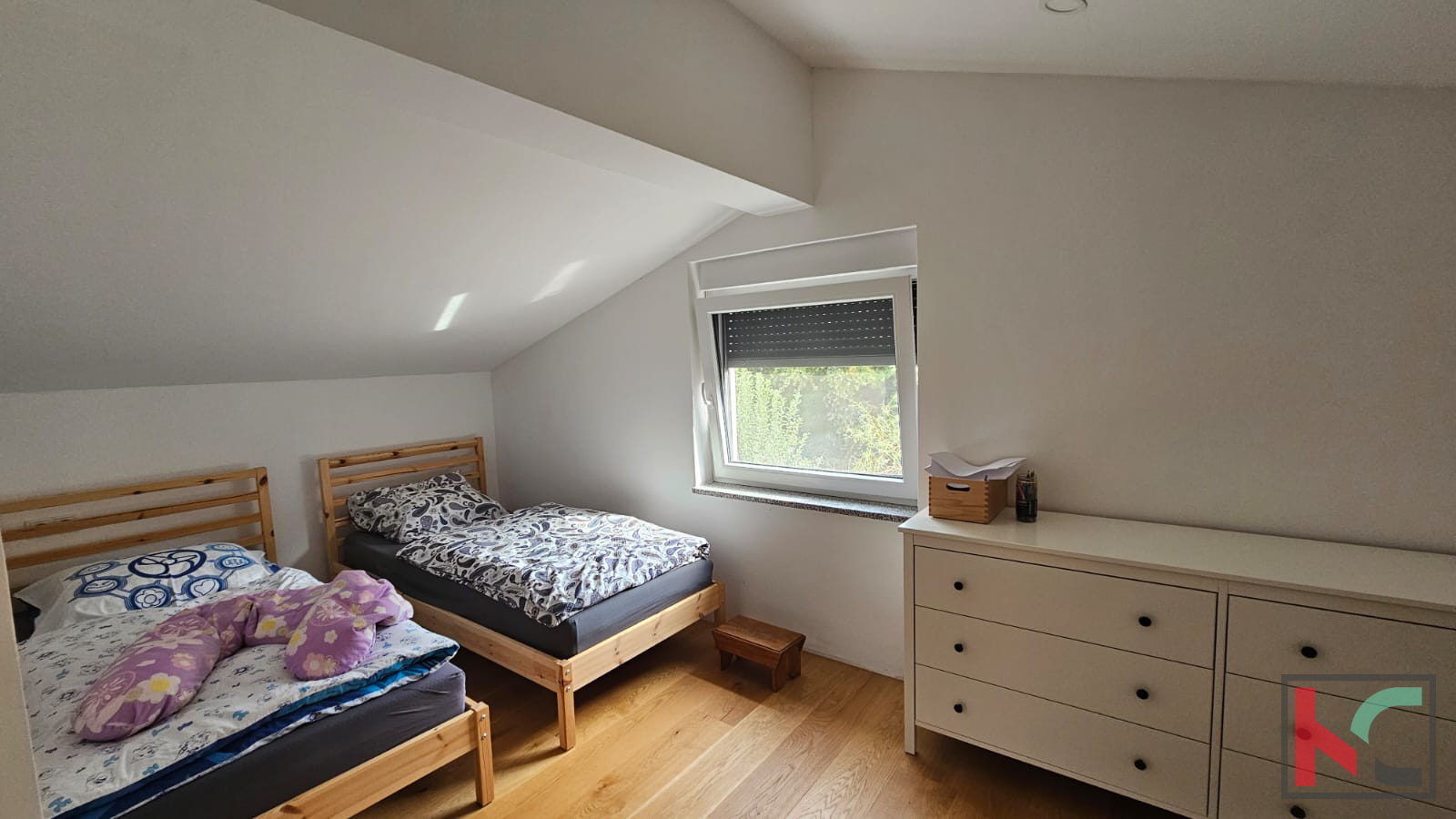 In Peroj, einer kleinen istrischen Siedlung am Meer, zwischen der Stadt Vodnjan und der Gemeinde Fažana, steht ein schönes Haus für gelegentliche Ferien zum Verkauf. Es ist von einem umzäunten Grundstück mit einer Gesamtfläche von m2 umgeben, auf dem mehr als 40 Bäume verschiedener Obstbäume stehen. Das modern eingerichtete und ausgestattete Haus erstreckt sich über zwei Etagen. Im Erdgeschoss gibt es eine gemütliche überdachte Terrasse, von der aus Sie den Flur betreten, der mit der offenen Küche und dem Wohnzimmer in Verbindung steht. Im Erdgeschoss befinden sich außerdem ein Badezimmer und ein Heizraum für die elektrische Fußbodenheizung, die im ganzen Haus verläuft. Eine Innentreppe (unter der sich Stauraum befindet) führt in den ersten Stock mit einem geräumigen Flur, einem weiteren Badezimmer und zwei Schlafzimmern. Die Böden sind mit hochwertigem Eichenparkett ausgelegt. Der Raum wird durch eine Klimaanlage gekühlt. Für zusätzliche Isolierung sorgt eine hochwertige zweifarbige PVC-Verkleidung (außen anthrazit, innen weiß). Dieses seltene Anwesen ist ideal für Natur- und Ruheliebhaber, geeignet für Ihren eigenen Urlaub und um dem Trubel der Stadt zu entfliehen. Ein weiterer Vorteil dieser Immobilie ist das Wirtschaftsgebäude, das über eine Toilette mit Waschküche, eine Sommerküche und einen weiteren Raum verfügt, der für verschiedene Zwecke geeignet ist: als Ort für geselliges Beisammensein, als zusätzliches Schlafzimmer oder als Aufbewahrungsort für Werkzeuge. Die Sicherheit der Immobilie während des Gerichtsverfahrens gegen den Eigentümer wird dank 5 Videoüberwachungskameras gewährleistet. Außerdem ist der Garten mit einer 120 m langen Steinmauer von 1,2 m Höhe und 0,6 m Breite eingezäunt. Die betreffende Immobilie verfügt über Strom, Wasser, eine Klärgrube und eine Pumpe mit Kalkreiniger. Mehrere Parkplätze sind vorhanden. Die Entfernung zum Meer beträgt m Luftlinie, die Strände sind ca. 2,5 km entfernt. Das Stadtzentrum ist ca. 1,5 km entfernt und bietet alle wichtigen Einrichtungen wie Geschäfte, Restaurants, Kirche, Bushaltestelle... Die Stadt Pula ist etwa 10 km entfernt. Der Flughafen in Pula ist ca. 15 km entfernt. Die Entfernung zur Autobahn beträgt ca. 8 km.