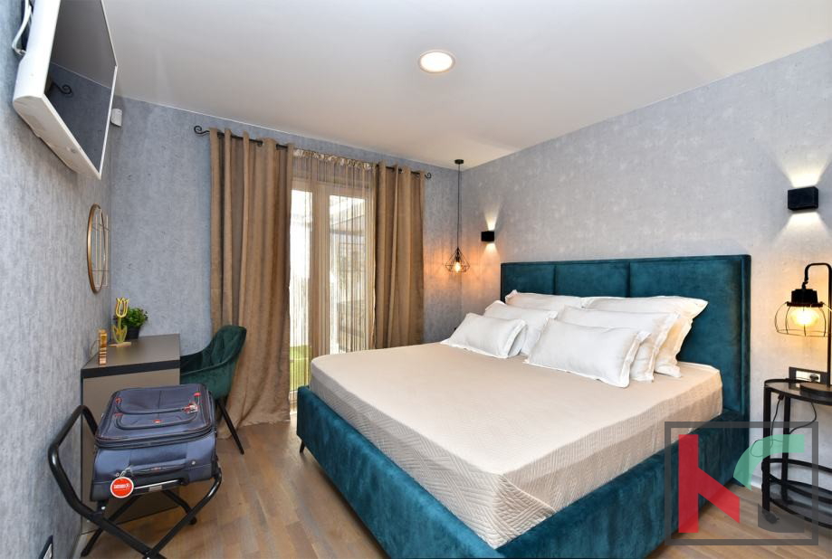 Verkauft wird eine modern möblierte 3-Zimmer-Wohnung in einem Neubau im Erdgeschoss. Es besteht aus zwei Schlafzimmern, Wohnzimmer mit Küche und Esszimmer, Ausgang zu einem wunderschön begrünten Innenhof, Badezimmer und überdachten Parkplätzen. Ausgestattet mit hochwertigen Materialien wie Dreischichtglas, Ferntür, Fußbodenheizung, Videoüberwachung und anderen anspruchsvollen Geräten. Das Apartment verfügt auch über einen Wellnessbereich mit Whirlpool und Sauna. Besitzte zwei überdachte Parkplätze. Ausgezeichnete Immobilie als Investition zur Miete, wenn man die Entfernung zum ersten Strand (150 m) berücksichtigt, aber auch eine wunderbare Immobilie für einen qualitativ hochwertigen und luxuriösen Urlaub in einer sehr begehrten Lage.