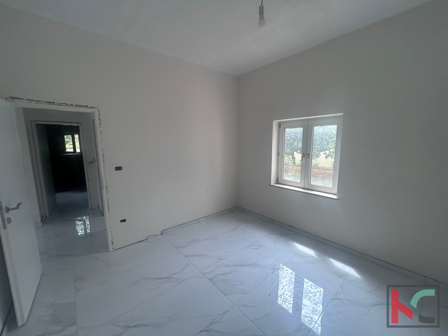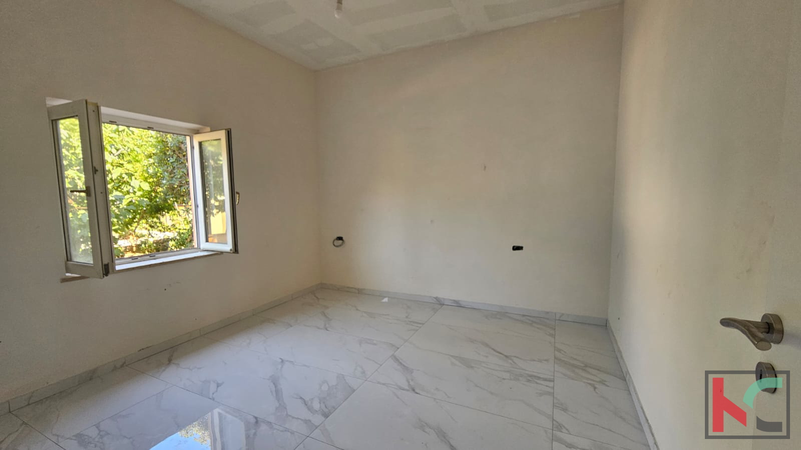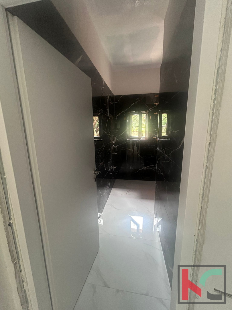 In einer ruhigen und von Grün umgebenen Siedlung der Stadt Poreč, nur sieben Autominuten vom Zentrum und der Meeresküste entfernt, wird eine dreizimmerige Wohnung im Erdgeschoss eines familiengeführten Wohnhauses mit insgesamt zwei Wohnungen, jeweils eine pro Etage, verkauft. Es handelt sich um eine komplett renovierte, unmöblierte Wohnung, die eine perfekte Gelegenheit bietet, sie nach eigenen Wünschen und Bedürfnissen zu gestalten. Die Wohnung besteht aus zwei Schlafzimmern, einem Badezimmer und einer offenen Küche mit Wohnzimmer, das mit einer großzügigen überdachten Terrasse verbunden ist und Ruhe sowie Blick auf den eigenen Garten bietet. Die Wärme wird durch Klimaanlagen reguliert. Der Garten bietet ausreichend Platz zum Entspannen, für einen Garten oder sogar den Bau eines privaten Pools, und mehrere Parkplätze sorgen für einen sorgenfreien Alltag. Die Immobilie ist ideal für das Familienleben oder als Ferienimmobilie und/oder als Investition für touristische Vermietung. Es besteht auch die Möglichkeit, das gesamte Haus zu kaufen, was dieses Angebot noch interessanter macht. In ruhiger Lage und dennoch in der Nähe aller Einrichtungen und Attraktionen von Poreč gelegen, vereint diese Immobilie Komfort, Funktionalität und Potenzial zu einer außergewöhnlichen Gelegenheit.