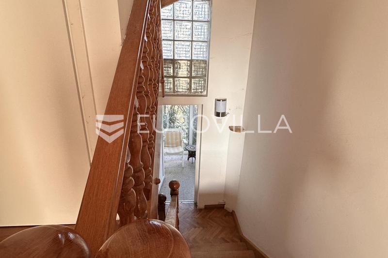 Zagreb, PERJAVICA, in a residential part of the city, a furnished apartment is for rent located on the first floor of a family house, with a completely separate apartment is accessed via a glass staircase and consists of a spacious living room with