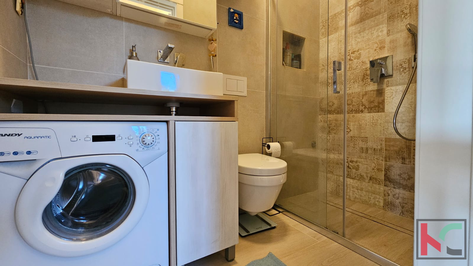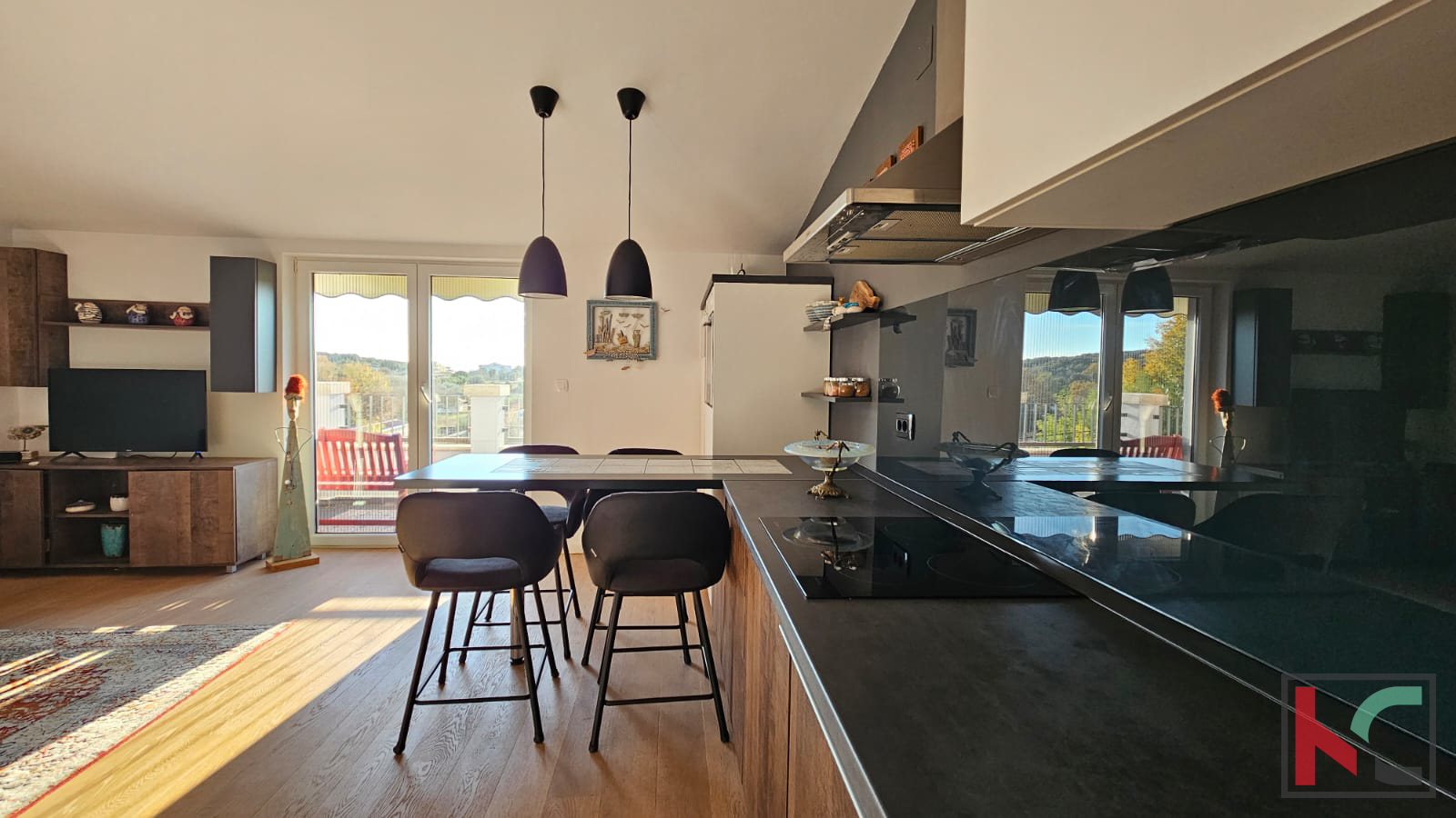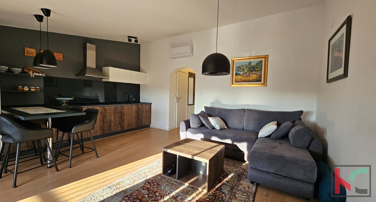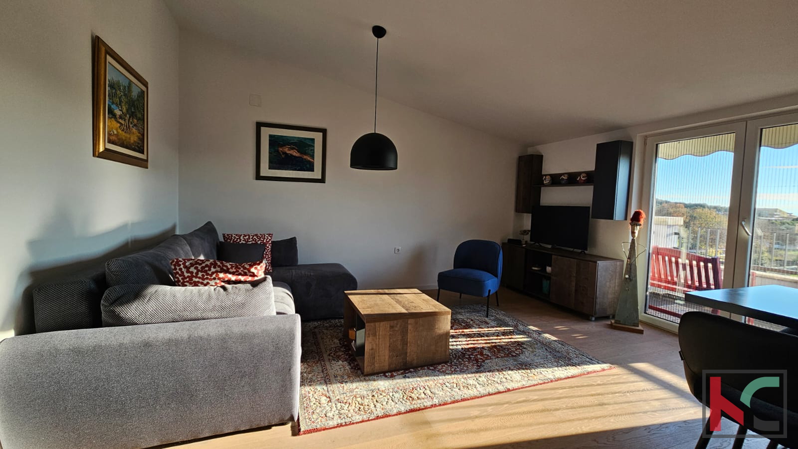 We are selling a beautiful sunny apartment in a quiet neighborhood near the center of Rovinj. It is located in a small residential building with only 6 apartments, with a total living area of m2 and includes one parking space. Through a well-maintained staircase, we enter the apartment which consists of an entrance hallway, bathroom, bedroom, large living room combined in an open space with the kitchen, and access to a sunny terrace. The apartment is extremely sunny, bright, and beautifully stylishly furnished. It is sold fully furnished and equipped with all necessary household appliances. A very pleasant and beautiful apartment with a wonderful open view of nature and greenery, and only 800 meters away from the sea.