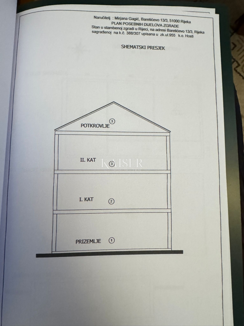 Kaiser Immobilien presents a spacious 120 m² apartment located in the quiet and family-friendly Pehlin neighborhood in Rijeka. The apartment is located on the first floor of the house and consists of a total of 4 rooms, including three comfortable be drooms, a spacious living room, a kitchen and dining room, and one bathroom. The property comes with two parking spaces, which is a great advantage in this part of the city. The apartment also has a terrace and a woodshed, which further increases its functionality. The communal infrastructure is fully equipped - water, electricity, city water supply and sewage are available, and access is possible via an asphalt road. Heating, cooling and ventilation are solved by a system that ensures a comfortable temperature throughout the year. The location is extremely practical for everyday life - there are schools, kindergartens, shops, post offices and public transport in the immediate vicinity, which makes this property ideal for a family or as an investment. ID CODE: 140-21 ... show all