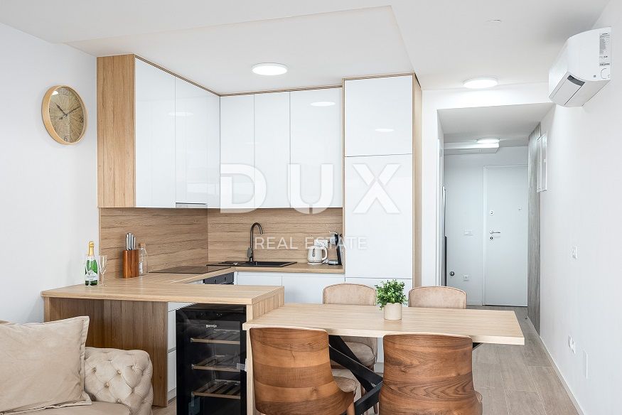 ocated on the second floor of a modern building and covers 83 m² of living space. The apartment consists of a spacious living room with kitchen and dining room, staircase, gallery, bathroom and balcony with a beautiful view. This apartment is not only special because of its location - although the beach is literally a few steps away - but also because of the carefully designed comfort for everyday life or vacation. An underfloor heating and air conditioning system connected to a heat pump is installed, which means that you have heating, cooling and hot water throughout the year - all through one efficient and economical system. The furniture is custom-made, and the interior is decorated with an emphasis on simplicity, functionality and quality. Every detail has been carefully selected to make the space comfortable and long-lasting. A parking space in front of the building is included in the price. Located just 10 meters from the sea, this apartment is an excellent choice for those looking for peace, quality and real proximity to the beach - whether for personal vacation, permanent residence or as a safe investment for rental. The apartment is in the VAT system, the buyer does not pay tax on the acquisition of real estate. Dear clients, the agency commission is charged in accordance with the General Terms and Conditions: . ID CODE: