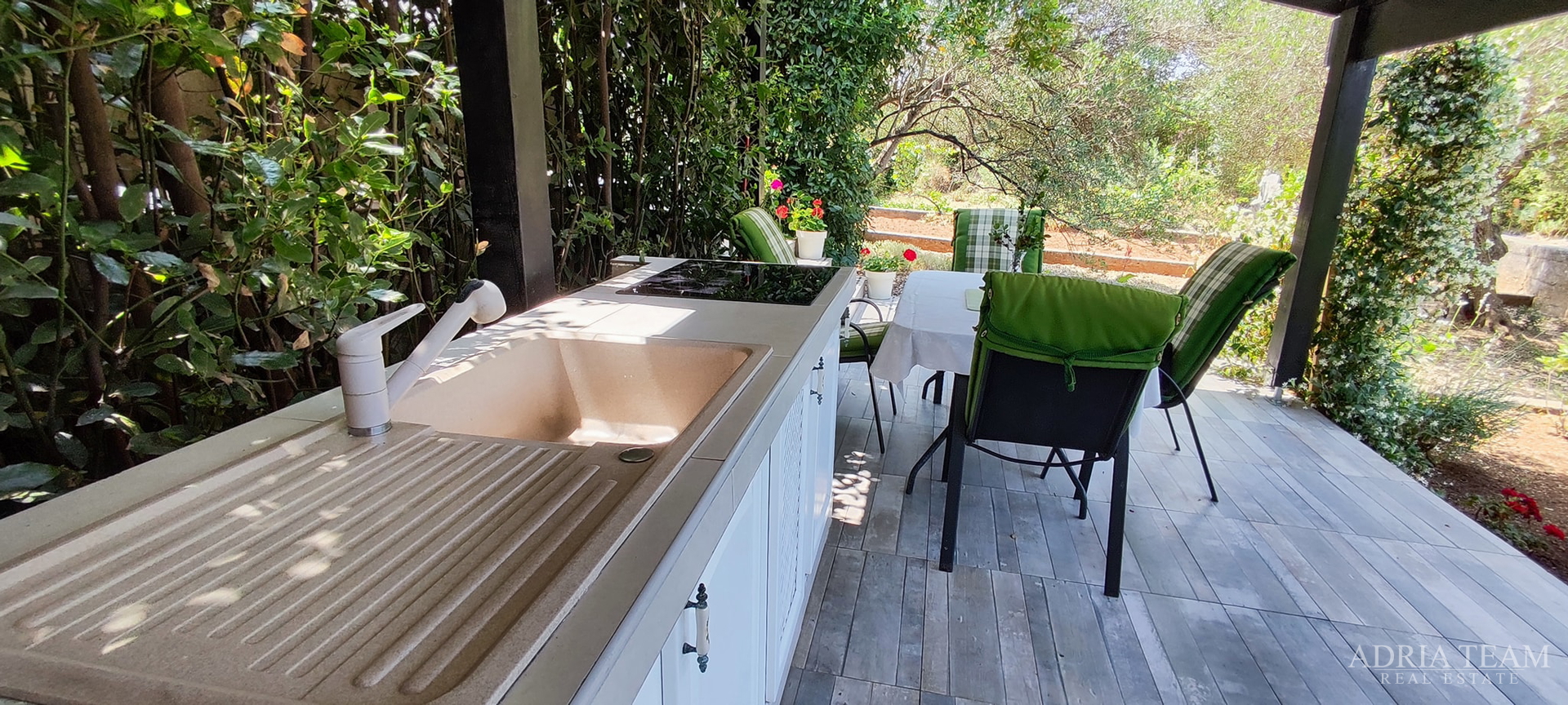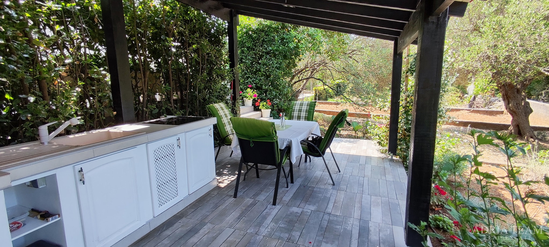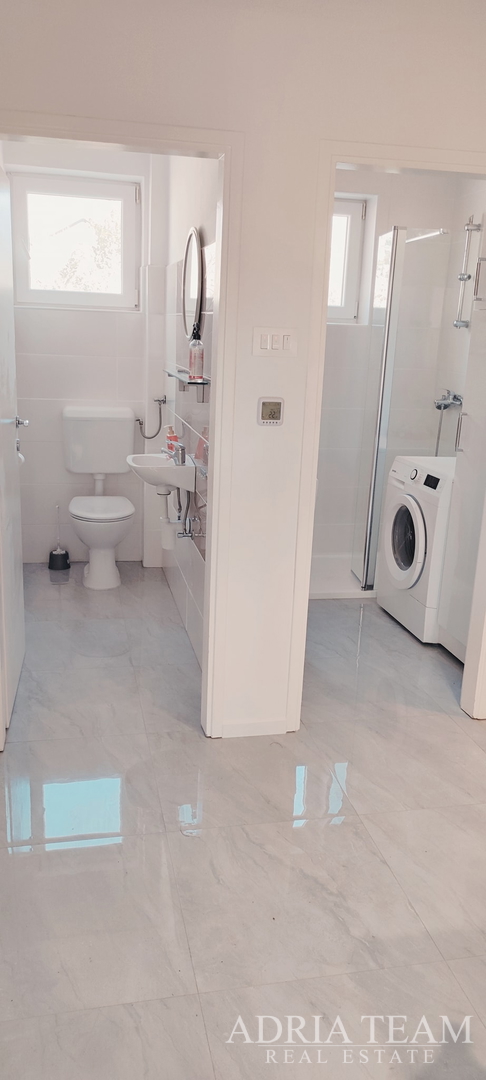 For Sale – Beautiful Two-Bedroom Apartment with Garage and Garden Lukoran, Island of Ugljan – near Zadar A modernly furnished two-bedroom apartment is for sale in the peaceful village of Lukoran on the island of Ugljan, just a 20-minute ferry r ide from the city of Zadar. The apartment is located on the ground floor of a smaller residential building with a total of five units. It is ideal for holidays, permanent living, or tourist rental. Layout and Areas: Living area: 47.23 m2 Landscaped outdoor area (garden gazebo): 34 m2 Garage: 26.79 m2 + parking space in front of the garage Beautifully maintained garden: 33.47 m2 Small vegetable garden: 19 m2 Total usable area value: approx. 89 m2. About the Apartment: The apartment is modernly and tastefully furnished with custom-made furniture. All appliances are of high quality. It consists of: two spacious bedrooms with TV (one can be used as a living room if desired), kitchen, bathroom, separate WC. The building has insulated façade (styrofoam), preparation for underfloor heating and air conditioning. The entire property is surrounded by greenery – olive trees, fig trees, and mandarin trees – creating a special Mediterranean atmosphere. Location: The sea, beach, shops, cafés and restaurants are only 200–250 meters away. Lukoran is a small and peaceful village, perfect for those who want to escape city crowds and stress while still being close to all amenities. After purchasing this property, all you need to do is unpack your bags and start living your long-dreamed life. For more information or to arrange a viewing, please feel free to contact us. ... show all