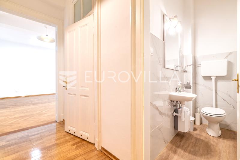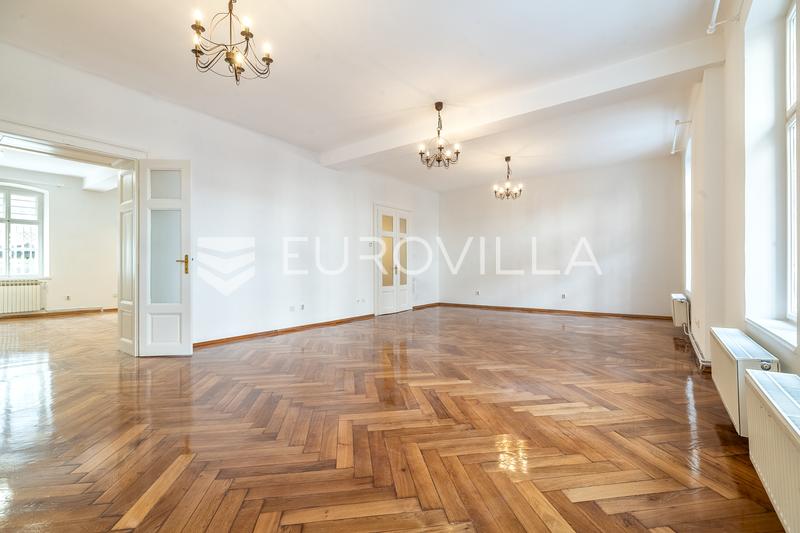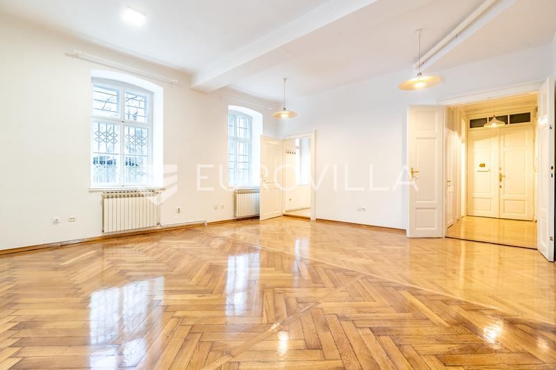 Zagreb, city center, renovated office space on the ground floor of a building with an area of 102 m2. It consists of two spacious work rooms, an archive/wardrobe room, a kitchenette and a bathroom.North-south orientation, large glass surfaces provide