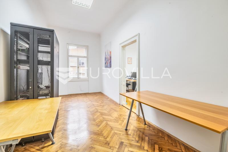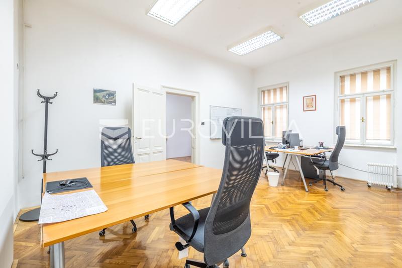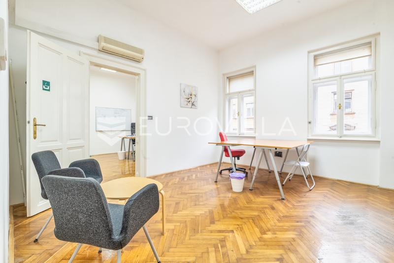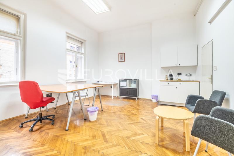 In the very center of Zagreb, in a representative residential and commercial building, a furnished office space with a net usable area of m² is for rent, located on the second floor. The space consists of three spacious rooms, a kitchenette and a bat