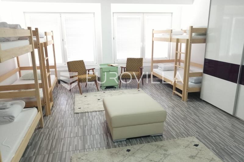 Karlovac, hostel 500 m2 in a quiet location near the center.Located on a fenced plot of 917 m2 with 440 m2 of paved parking space. Well-established business, currently in operation. Sold fully furnished.Consists of 8 bedrooms, kitchen, dining room, 5