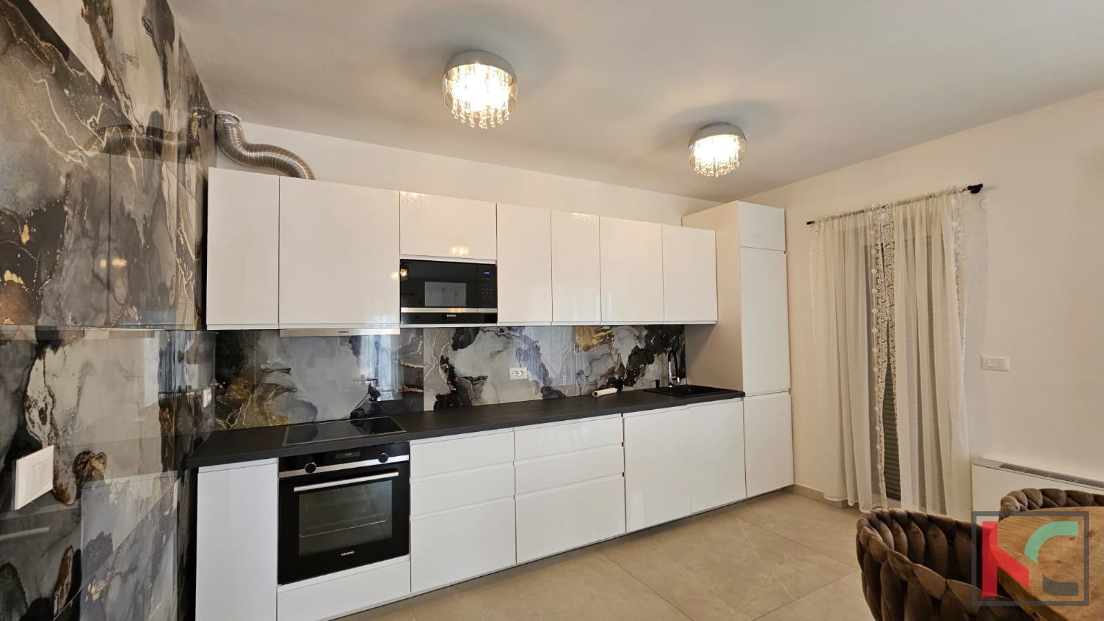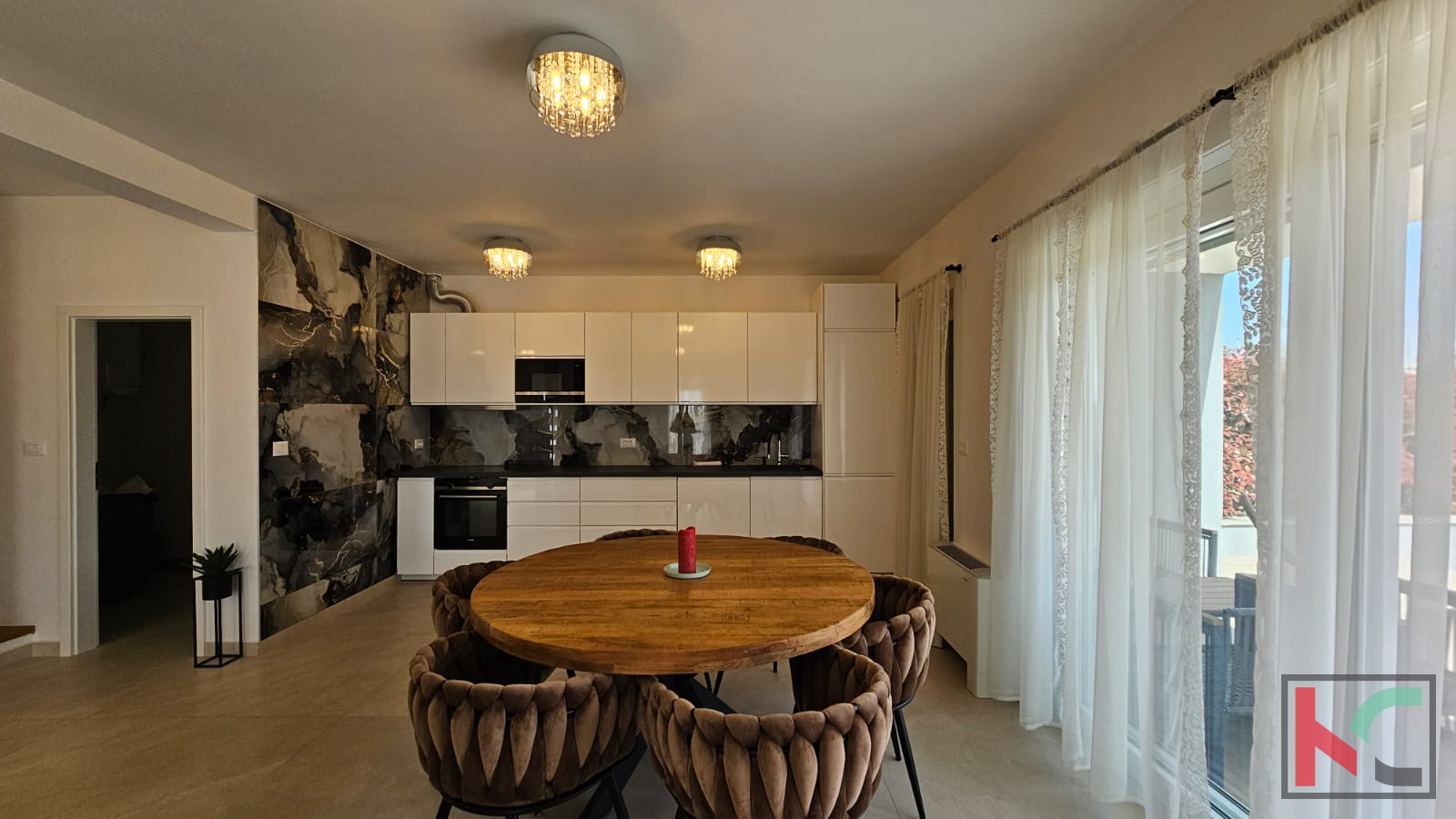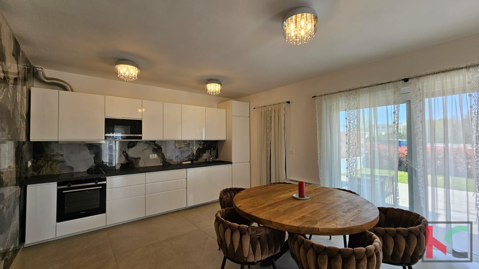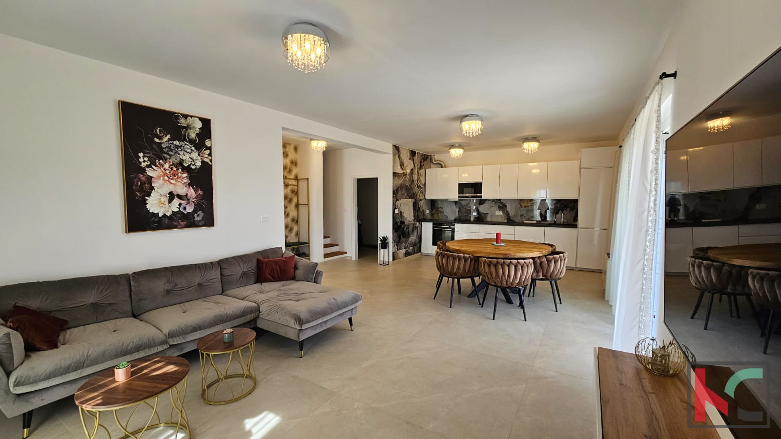Poreč is a world-renowned city on the western coast of Istria, distinguished as a city of culture, tourism, sports, and entertainment. In its settlement Nova Vas, which is only a 5-minute drive to beautiful beaches, a modern terraced house is for sale. This spacious property was built in and covers an area of 128 m2, providing an ideal home for a family or an investment. The house has been carefully designed to meet contemporary living standards. The house consists of a ground floor and a first floor. On the ground floor, there is an entrance hallway, a toilet, a small storage room, a laundry room, and a spacious open-plan kitchen with a living room communicating with the terrace and overlooking a very well-maintained garden. On the first floor, there are three bedrooms and two bathrooms, providing ample space for comfort and privacy. The south orientation allows plenty of natural light throughout the day. The interior is equipped with a modern kitchen with appliances, and air conditioning ensures a pleasant temperature all year round. The property stands out with additional features such as a terrace and a spacious garden, perfect for relaxation and socializing in the fresh air. The anti-burglary doors provide extra security, while the landscaped yard contributes to the aesthetic appeal. Available parking is an added convenience for vehicle owners. The location in Nova Vas offers excellent connectivity to the city of Poreč, and the proximity to major roads allows easy access to all amenities. Furthermore, the asphalt road facilitates daily activities and travel. We invite you to personally experience the charm of this property. For more information or to arrange a viewing, please feel free to contact us.