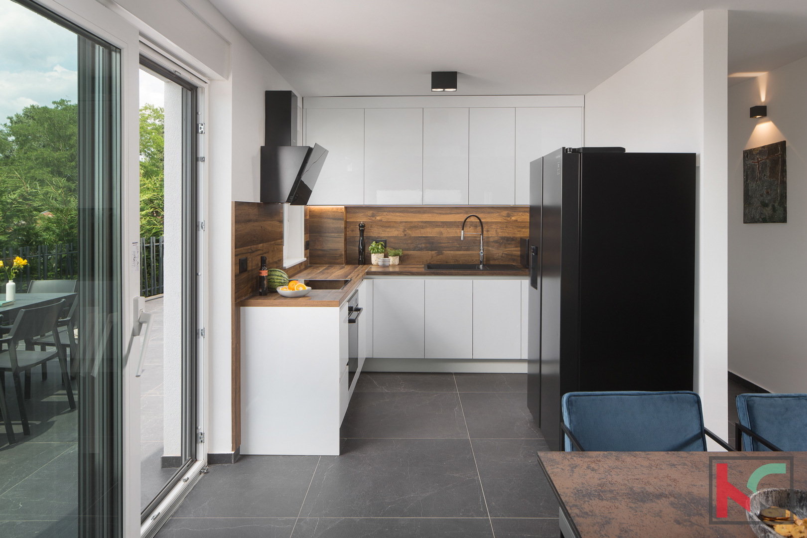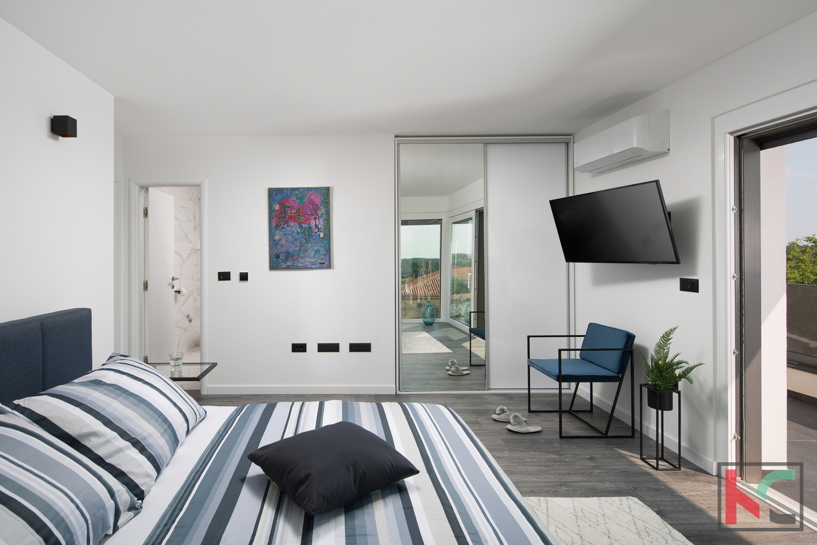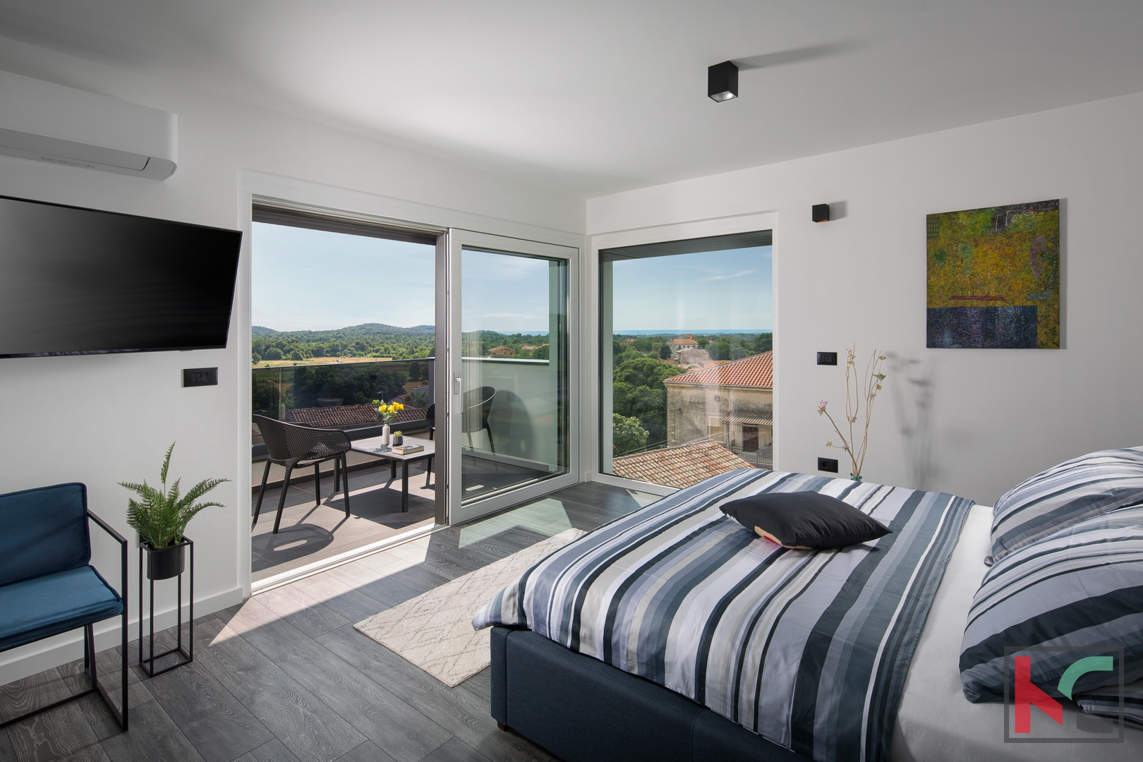We present to you a beautiful villa located in Sveti Lovreč, not far from Vrsar and stunning beaches. Built in , this house offers the perfect combination of modern design and comfort. It spans three floors with a total area of 220 m² and consists of a mild basement, a high ground floor, and an upper floor. On the lowest level, there is a recreational area featuring all kinds of entertainment, including a game room, billiards, and a home theater. The second floor houses a living room with access to the balcony, a fully equipped kitchen, and one bedroom with an ensuite bathroom. On the top floor, there are the remaining 3 bedrooms with their own bathrooms, two of which have access to a large terrace. The interior of the house is carefully furnished to meet all your needs, including a modern kitchen with appliances, a dishwasher, and a washing machine. Comfort is further enhanced by underfloor heating, a heat pump, and air conditioning. The villa boasts its peaceful location and beautiful sea views, making it an ideal choice for those seeking harmony with nature. With a spacious yard and landscaped garden, this property provides the perfect place to relax by the pool or jacuzzi, and for sports enthusiasts, there is also a multifunctional playground and a tennis court. Outdoor features include a terrace and balcony, perfect for enjoying sunny days. For added security, the property is equipped with anti-burglary doors and video surveillance. The location of this villa allows for easy access to natural beauties while offering a tranquil environment away from the hustle and bustle of the city. Sveti Lovreč is known for its proximity to the sea and authentic Istrian ambiance. We invite you to personally experience all that this unique villa has to offer. For more information or to arrange a viewing, feel free to contact us.