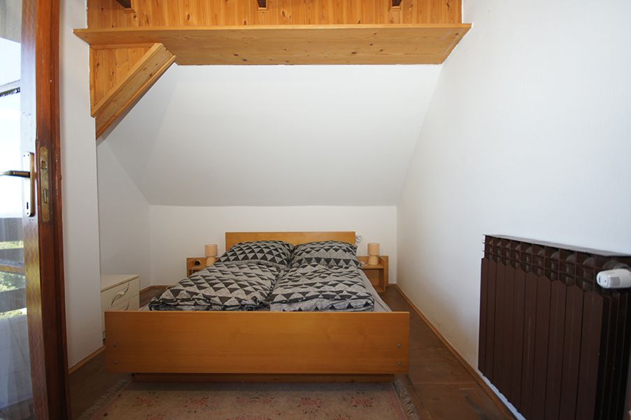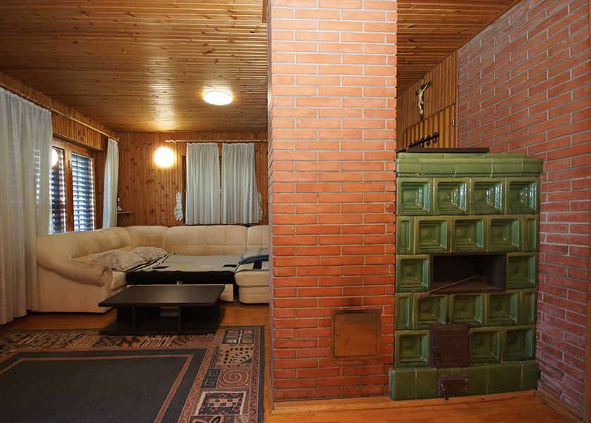 In the basement there is a wine cellar, kitchen, dining area with exit to a roofed terrace and garden, toilet, boiler room and storage. The ground floor offers a large living room with exit to a roofed terrace with a beautiful view of the villages in the lowlands, bathroom and two rooms used as storages. The loft consists of two bedrooms, each with an exit to the balcony and several rooms used as storages. The garden is fenced and landscaped. The house has connections to electricity and city water supply, and connections to sewage and gas network are also possible.
