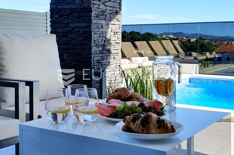 Šibenik, Podsolarsko, beautiful house with a swimming pool and sea view