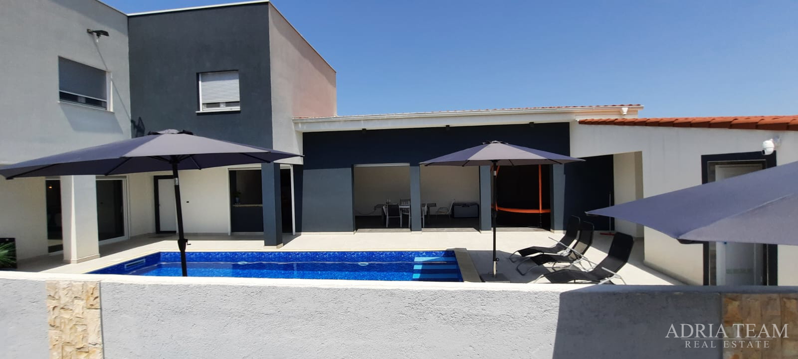 Zadar, Gornji Karin, modern house with pool and two apartments, 200 m from the sea