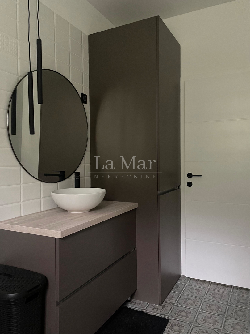 Agencija Adria La Mar nekretnine d.o.o. posreduje pri najmu kompletno adaptiranog i potpuno uređenog stana u Novakovoj ulici. Nalazi se u prizemlju u stambenoj zgradi koja ima ukupno 2.kata. U blizini je samog centra grada, a okružen je zelenil om i pruža privatnost i mir. Ukupna kvaratura stana iznosi 46,71 m2, a sastoji se od ulaznog dijela u kojem se nalazi ugradbeni ormar, predivne Eduro kuhinje, dnevnog boravka, spavaće sobe i kupaonice s wc-om. Kuhinja je opremljena svim aparatima ( pečnica, ploča za kuhanje, napa, frižider, perilica suđa). U kupaonici se nalaze perilica i sušilica rublja. Stan je kompletno adaptiran 2023.g. Bez kućnih ljubimaca i pušača. Grijanje: centralno etažno plinsko + klima uređaj. Parking se nalazi oko zgrade i besplatan je. UVJETI NAJMA: Ugovor na rok od minimalno 12 mjeseci. Cijena: mječena najamnina u iznosu od 800,EUR + režije Depozit: u visini jedne mjesečne najamnine Postoji mogućnost i kratkotočnog najma 60 EUR/dan. Agencijska provizija: pola iznosa jedne mjesečne najamnine. Stan je dostupan odmah. Za prezentaciju ove nekretnine ovlaštena je Agencija Adria La Mar nekretnine d.o.o, te klijentima stojimo na raspolaganju za sve upite te dogovor oko razgleda nekretnine putem maila ili na 091/, Matea Perković . Adria La Mar nekretnine d.o.o. Teslina 14/1, Zagreb ... prikaži sve