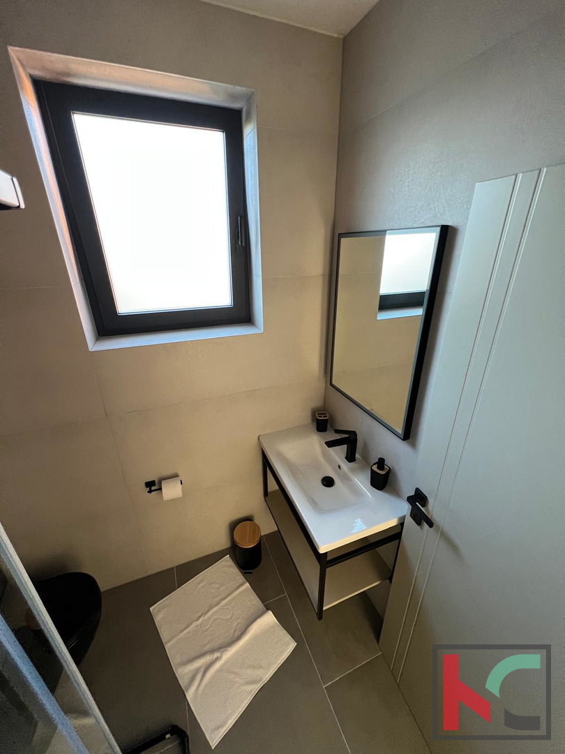 Kuća se proteže na parceli od 767 m2 i prostire se na dvije etaže, pružajući obilje prostora za udoban obiteljski život. Orijentacija prema jugu, zapadu i istoku omogućuje obilje prirodnog svjetla tijekom cijelog dana te prekrasan pogled na prirodu i more u daljini. Kuću čine konforan dnevni boravak, kuhinja i blagovaona, te toalet u prizemlju kuća. Na katu četiri spavaće sobe osiguravaju privatnost i praktičnost za veću obitelj ili goste. Među dodatnim pogodnostima izdvajaju se balkon, uređena okućnica, privatni bazen 35 m2, dvorište i ljetna kuhinja za uživanje tijekom toplijih mjeseci. Sigurnosne značajke uključuju alarmni sustav i protuprovalna vrata. Opremljenost vile uključuje podno grijanje i hlađenje s ventilokonvektorima, osiguravajući ugodnu temperaturu tijekom cijele godine. ALU K troslojna stolarija pruža izvrsnu toplinsku i zvučnu izolaciju, doprinoseći energetskoj učinkovitosti i udobnosti. Kuća je smještena na rubu građevinske zone i u neposrednoj blizini prirode, što osigurava mir i privatnost. Svetvinčenat je poznat po svom šarmu i kvaliteti života, a ova kuća se nalazi u blizini svih važnih sadržaja, uključujući trgovine, škole i prometne poveznice, što je čini idealnim izborom za obiteljski život ili investiciju. Nekretnina je dostupna po povoljnoj cijeni, što predstavlja izuzetnu priliku za kupnju kvalitetnog doma na atraktivnoj lokaciji. Za sve dodatne informacije i dogovor oko razgledavanja, slobodno nas kontaktirajte. **Zainteresirani kupci mogu dobiti potrebne informacije o oglašenoj nekretnini i razgledati istu putem naših agenata isključivo uz prethodno potpisivanje ugovora o posredovanju o prometu nekretnina.
