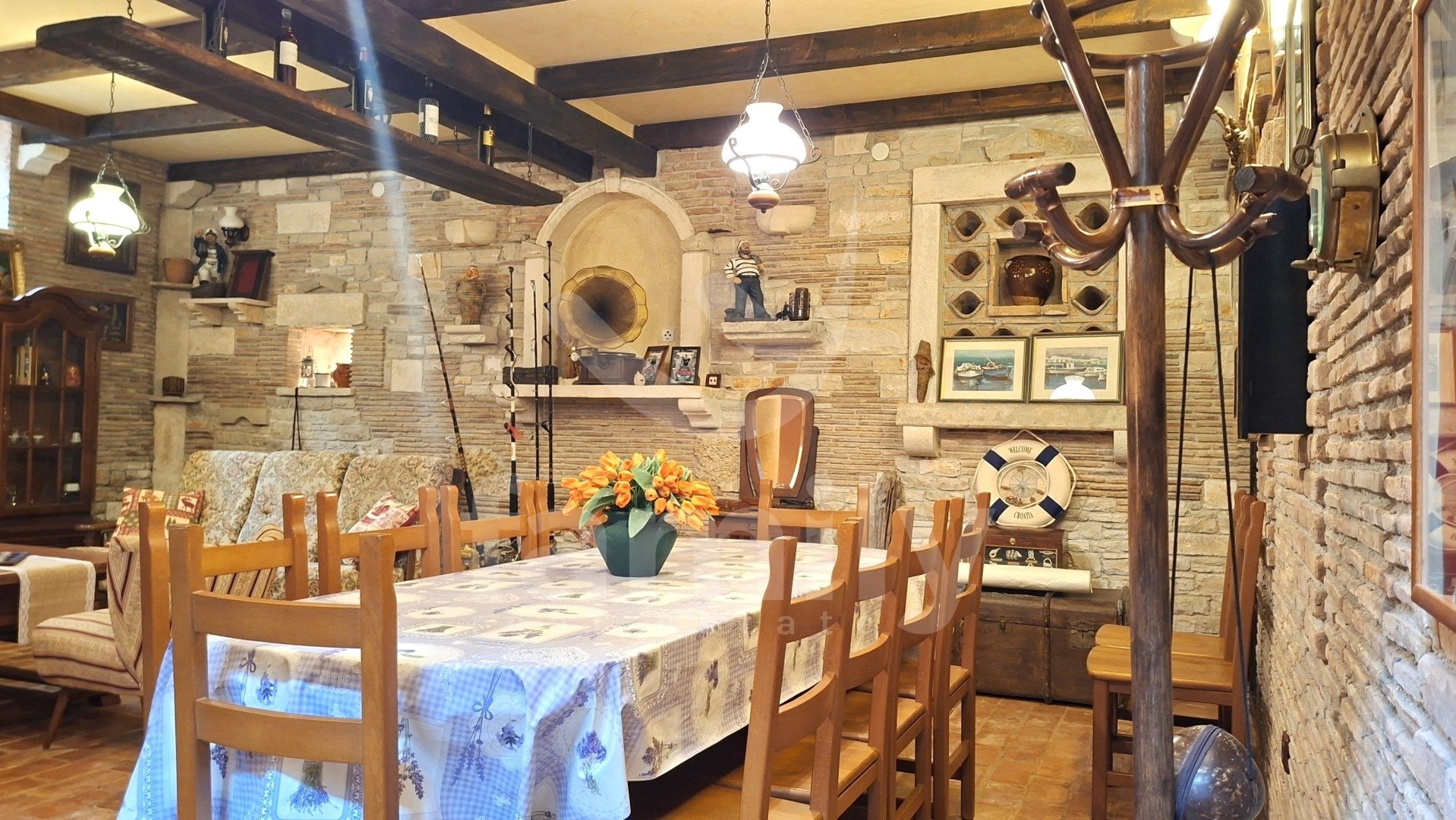 alinadama. Šetajući uskim ulicama i trgovima u kosini podno crkve Sv.Eufenije okruženom bogatom vegetacijom od kud se pruža predivan pogled ka moru. Upravo u Rovinju nedaleko od mora nalazi se ovaj prekrasan stan površine 110 m2 na dvije etaže u prizemlju stambene zgrade. Stan se sastoji od ulaznog prostora koji vodi u dnevni boravak koji je povezan sa visokokvalitetnom kuhinjom koja sadrži svu potrebnu opremu kuhinjskih aparata. Pri tom se također nalazi i jedna komotna spavaća soba te kupatilo kao i jedna veća prostorija koja trenutno služi kao ostava. Unutarnjim stepenicama se silazi u podrum od kojeg je napravljena prekrasna, prostrana konoba. U stanu je postavljena PVC stolarija, podovi su obloženi keramikom dok je grijanje i hlađenje regulirano putem tri klima uređaja i kaminom na drva. Ispred stana se nalazi komforna terasa. Cjelokupni stan je dobro osmišljen, pri čemu se posebno pazilo da se očuva autentičnost mediteranskog stila, rustikalni detalji, topli tonovi, pažljivo biran namještaj koji stvaraju osjećaj ugodnog doma. Destinacija ove nekretnine je tijekom cijele godine među najatraktivnijim u Istri. Nalazi se u neposrednoj blizini trgovina, restorana, galerija, šetnica i mora. Lokacija je izuzetna što ovu nekretninu dodatno uvrstava u vrlo zanimljivu investiciju za one koji traže spoj povijesnog šarma i modernog života u jednom od najljepših gradova Mediterana. Za sve dodatne informacije stojimo vam na raspolaganju. + Mirjana Tomičić Asistent u posredovanju