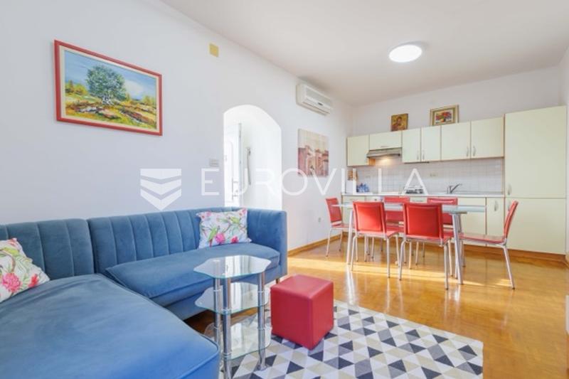cije s obiljem dnevnog svijetla. Sastoji se od ulaznog hodnika, manje spavaće sobe za dvije osobe, kuhinje i dnevnog boravka s izlazom na balkon koji se proteže dužinom stana, komforne kupaone, te velike spavaće sobe također s izlazom na balkon.Stanu pripada i dio vrta od 50 m2 u prizemlju zgrade što je definirano međuvlasničkim ugovorom te lijepa drvena ljetna kućica u kojoj je ljetna kuhinja te predstavlja lijepi prostor za popodnevna i večernja druženja.Parkirno mjesto na ograđenoj okućnici također pripada stanu.Velika prednost je svakako blizina atraktivnih plaža i kupališta do kojih je potrebno svega par minuta laganog hoda, bez potrebe vožnje automobilom.U koliko ste teniski fan, teniski tereni gdje se održava poznati ATP Umag open u neposrednoj su blizini.Za organizaciju razgleda i više informacija slobodno nas kontaktirajte.... Više na *website*, ID: