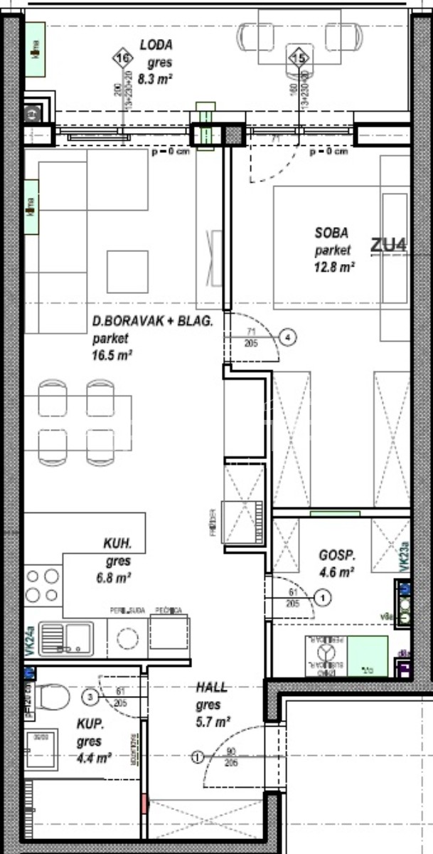 stambenih jedinica i 2 poslovna prostora. Moguć je odabir podnih obloga (keramika, parket ili laminat) te odabir unutarnje stolarije. Uz stan moguća je kupovina vanjskog parkirnog mjesta, garažnog mjesta bez spremišta ili garažnog mjesta sa spremištem.