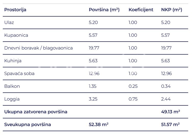 - Površina: 51,6 m2