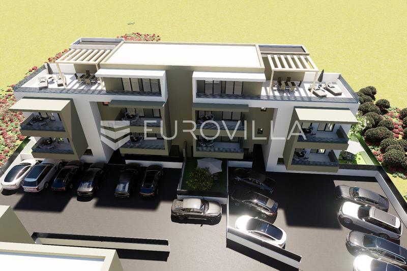 Trogir, dvosobni stan na prvom katu stambene zgrade.Z4 - S4 - stan ima funkcionalan raspored i sastoji se od ulaznog hodnika, dvije spavaće sobe, kupaonice, kuhinje s blagovaonicom i dnevnog boravka s izlazom na natkriveni balkon od 9,32 m2.Površina