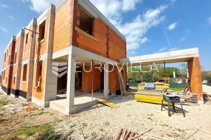 U mirnom i ugodnom okruženju Loborike smjestila se moderna dvojna kuća ukupne površine 125 m2, idealna za obiteljski život ili kao investicija za odmor. Ova pažljivo projektirana nekretnina pruža savršen spoj funkcionalnosti i udobnosti, s naglaskom na otvoren i svijetao prostor.Prizemlje odiše prostranošću i povezanošću – dnevni boravak i kuhinja čine skladnu cjelinu iz koje se izlazi na natkrivenu terasu, savršenu za opuštanje i druženje na otvorenom. Na terasi se nalazi i dodatno vanjsko spremište. U prizemlju je smješten i WC za goste te spremište ispod stubišta koje vodi na prvi kat.Na katu se nalaze tri spavaće sobe, dvije kupaonice te zaseban prostor za vešeraj.Kuća je opremljena podnim grijanjem na struju u svim prostorijama, kao i klima uređajima, čime je osigurana ugodna temperatura tijekom cijele godine. Prema projektu, postoji mogućnost izgradnje bazena, što budućem vlasniku ostavlja dodatnu slobodu uređenja prema vlastitim željama.Planirani završetak radova je prosinac . godine.Za više informacija ili dogovor za razgledavanje slobodno nas kontaktirajte.... Više na *website*, ID: