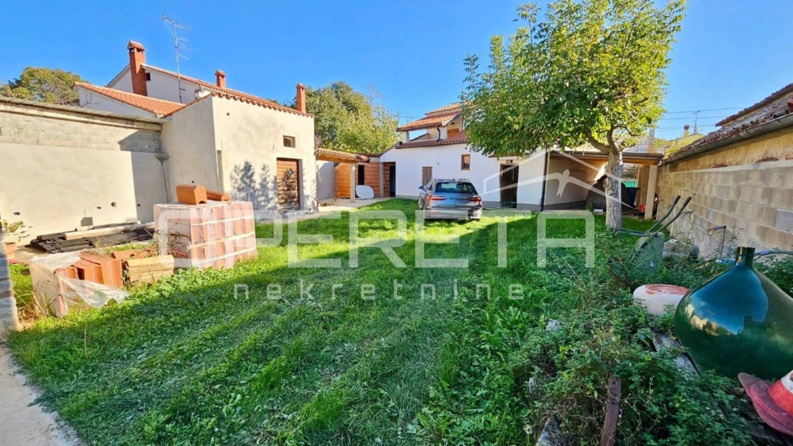 Kuća raspolaže velikim vrtom koji pruža mogućnost uređenja i ugradnje manjeg bazena. Dodatnu vrijednost nekretnini daju i vanjski pomoćni objekti, pogodni za korištenje kao depandanse, kao i osigurana parkirna mjesta.