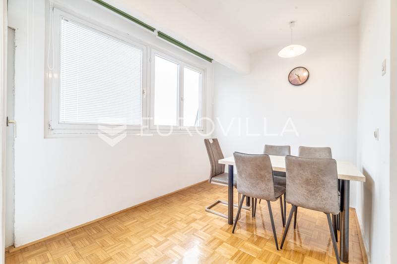 U neposrednoj blizini Savske i Zagrepčanke, u održavanoj zgradi s liftom.Sastoji se odhodnikatri sobeWC-akuhinje s blagovaonicomkupaonicebalkonaLiftom se dolazi do 5. kata, a zadnji kat potrebno je preći pješice.Trenutni namještaj (kreveti) će biti u