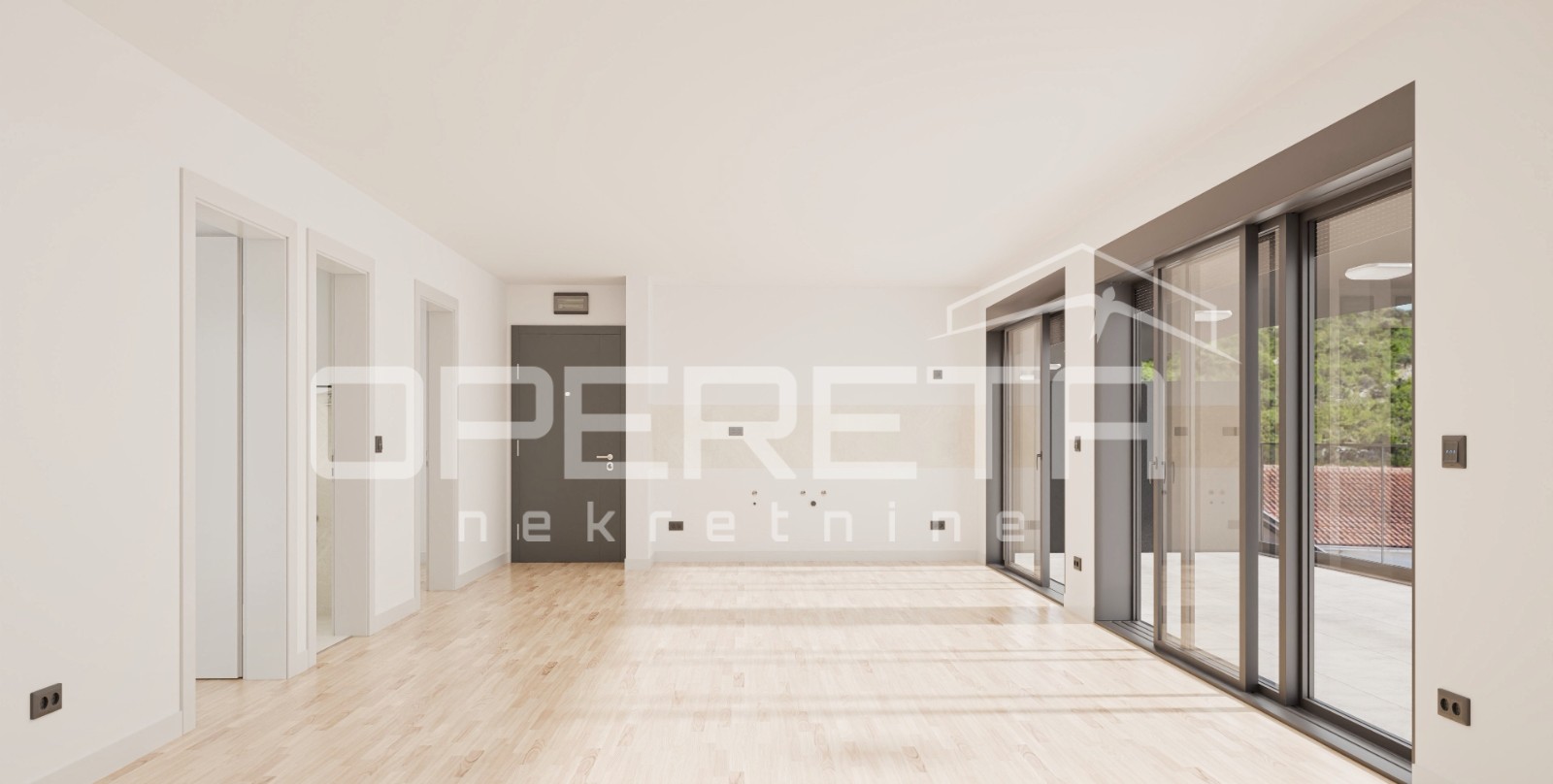 Stan se sastoji od dnevnog prostora s kuhinjom i blagovaonicom površine preko 30m2, dvije spavaće sobe, jedne kupaonice i terase veličine 26 m2. Uz stan dolazi jedno vanjsko parkirno mjesto.