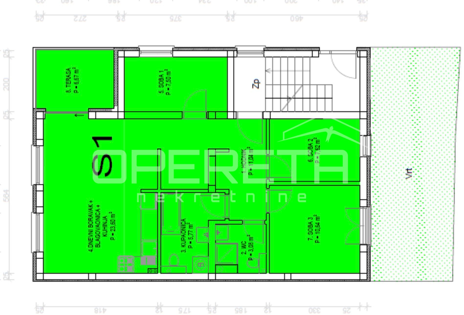 - Površina terase: 6,67 m2