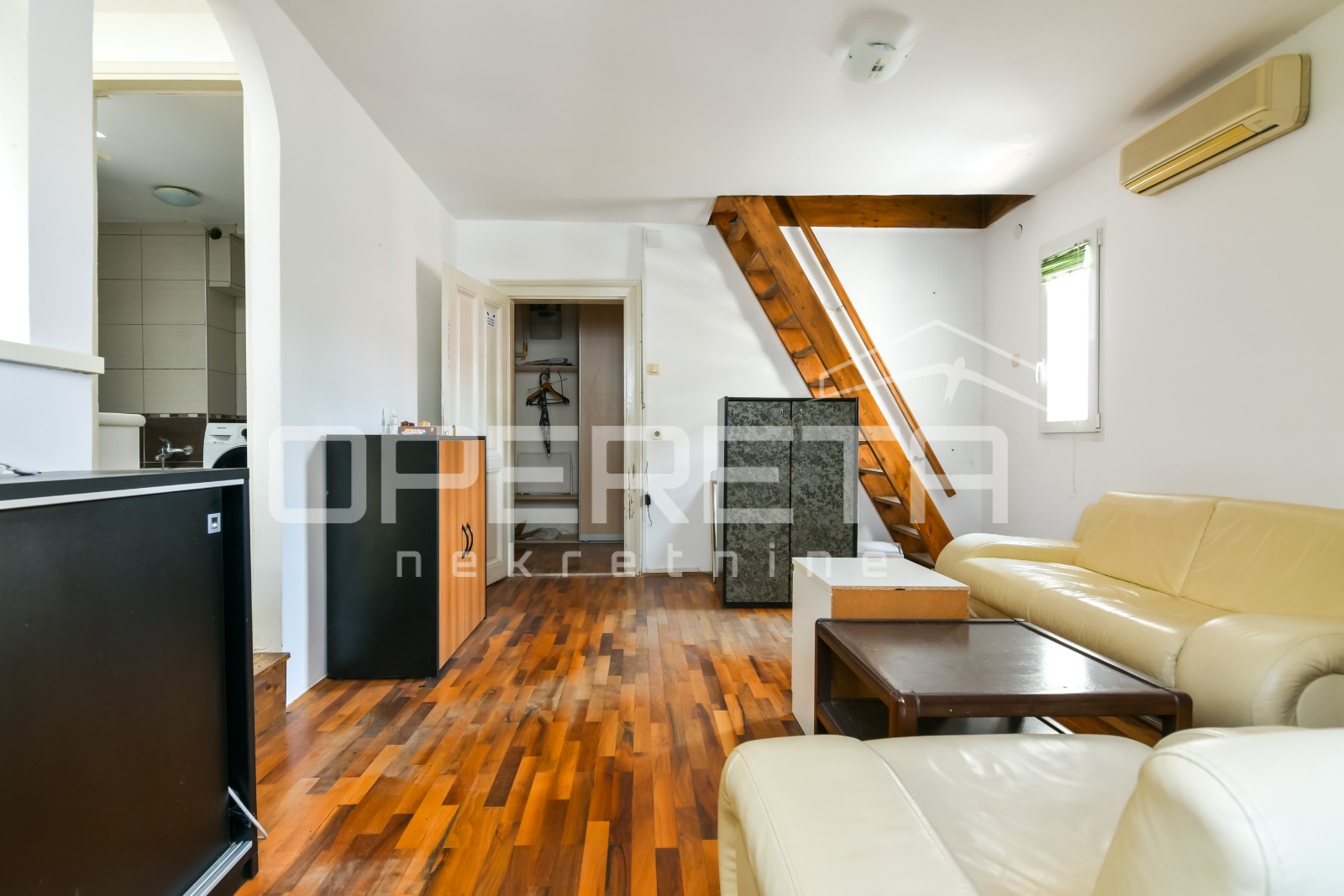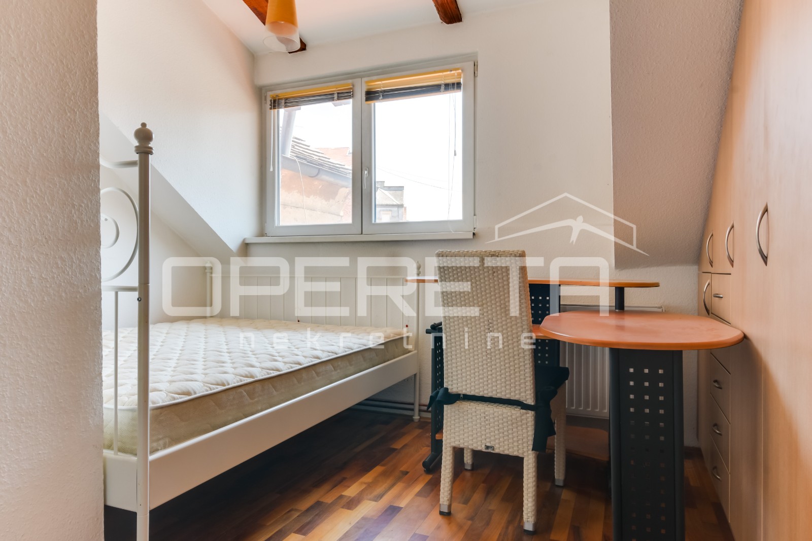 U samom srcu centra, nadomak Cvjetnog trga, u potkrovlju manje zgrade, nalaze se dva stana.