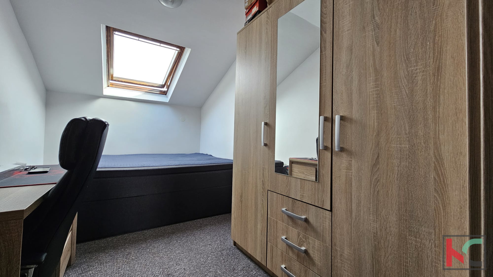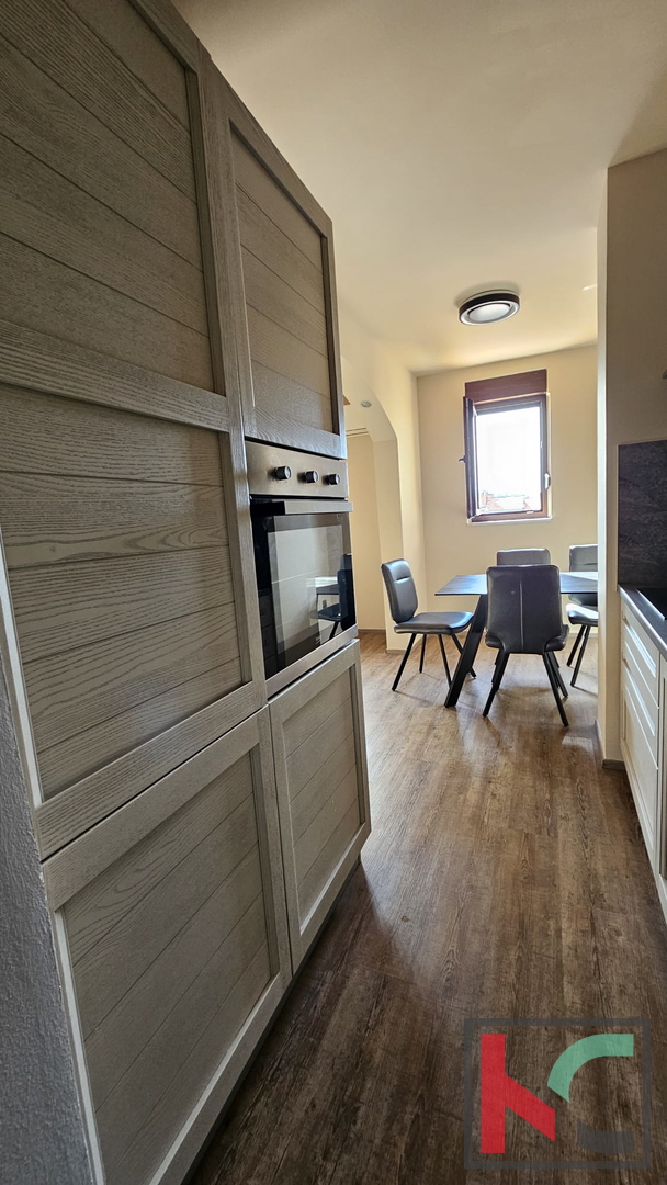 Prodajemo trosoban stan u stambenoj zgradi ukupne površine 65m2. Nalazi se na posljednjem katu uredno održavane zgrade i sastoji se od dvije spavaće sobe, dnevnog boravka, kuhinje s blagovaonom, kupaonice sa WC-om, hodnikom i drvarnicom u prizemlju. Stan je potpuno renoviran sa novim podovima, vratima, sanitarijama, instalacijama struje i vode, kuhinje sa svim potrebnim aparatima te namještajem u sobama. Sunčana strana daje dodatnu svjetlost i prozračnost stanu, grijanje je na klimu i norveške radijatore. Podovi su laminat i pločice, a sa prozora se pruža pogled na more. Stanu pripada i ostava u prizemlju, a u neposrednoj blizini stana je i parkirno mjesto. Ima i mogućnost korištenja zajedničke krovne terase. Nekretnina je idealna za obitelj ili za ugodan odmor u najljepšem gradu u Istri.