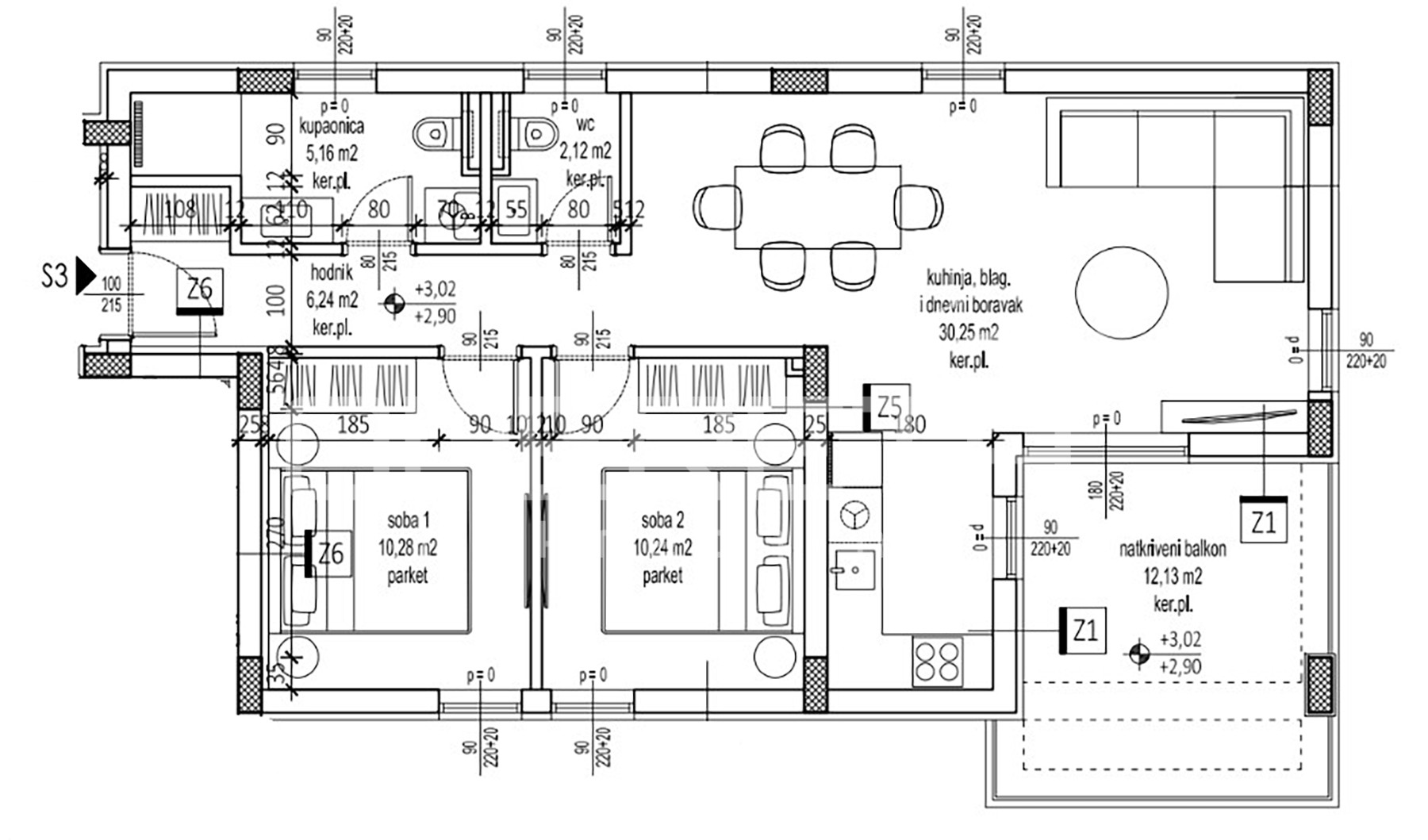 - Površina balkona: 12,13 m2
