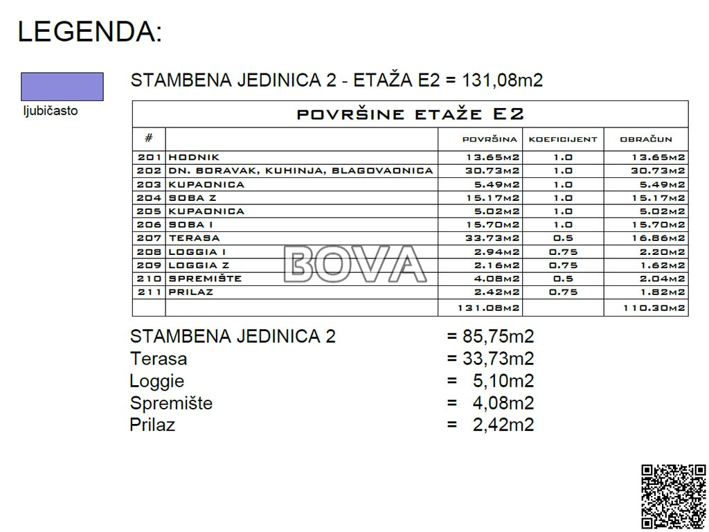 ukupna korisna površina stana je 131,08m2;