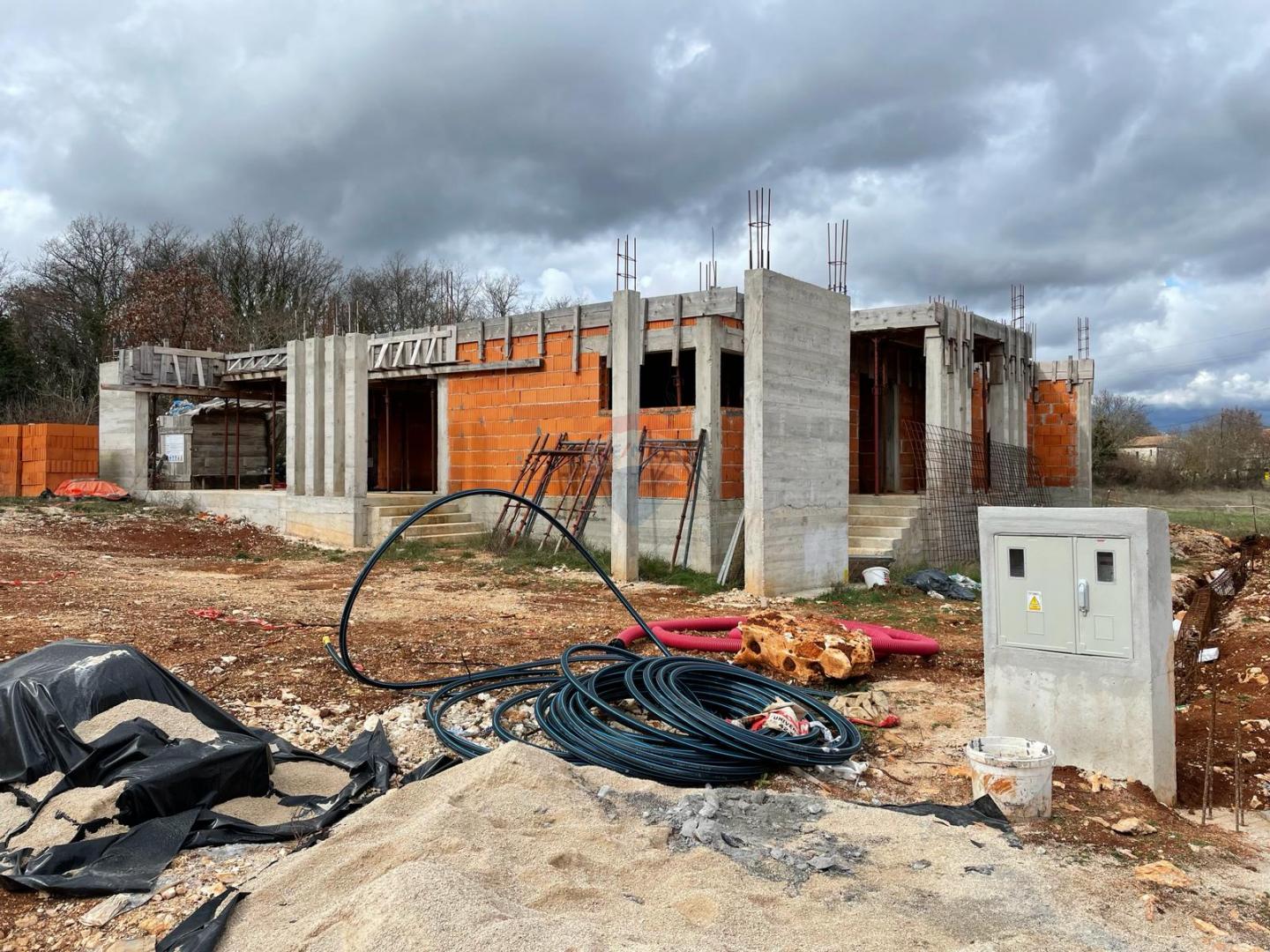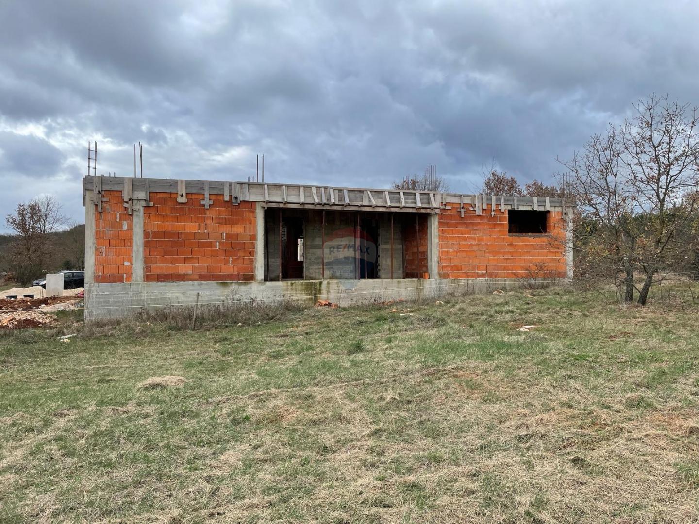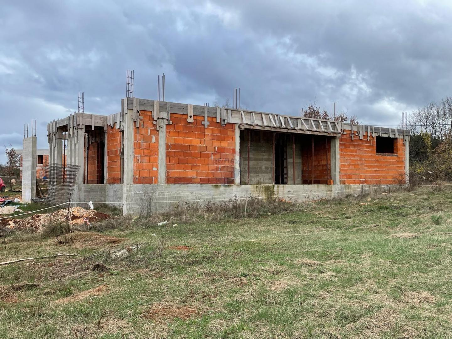 kuća u roh-bau fazi, netto površine 143 m2, smještena na mirnoj lokaciji u okolici Rovinja, udaljena svega cca 10 km od mora i centra grada.
