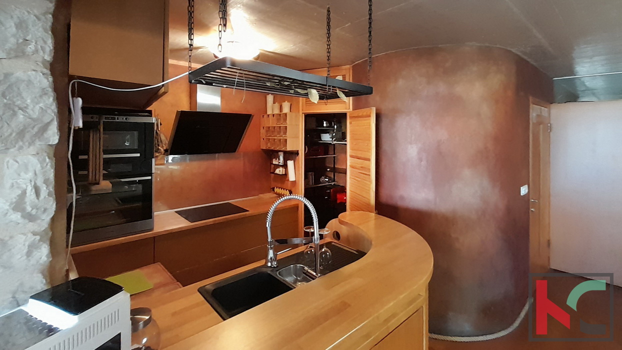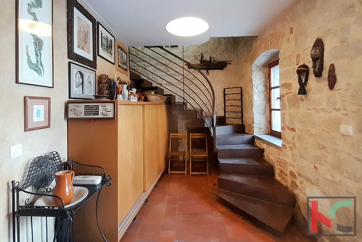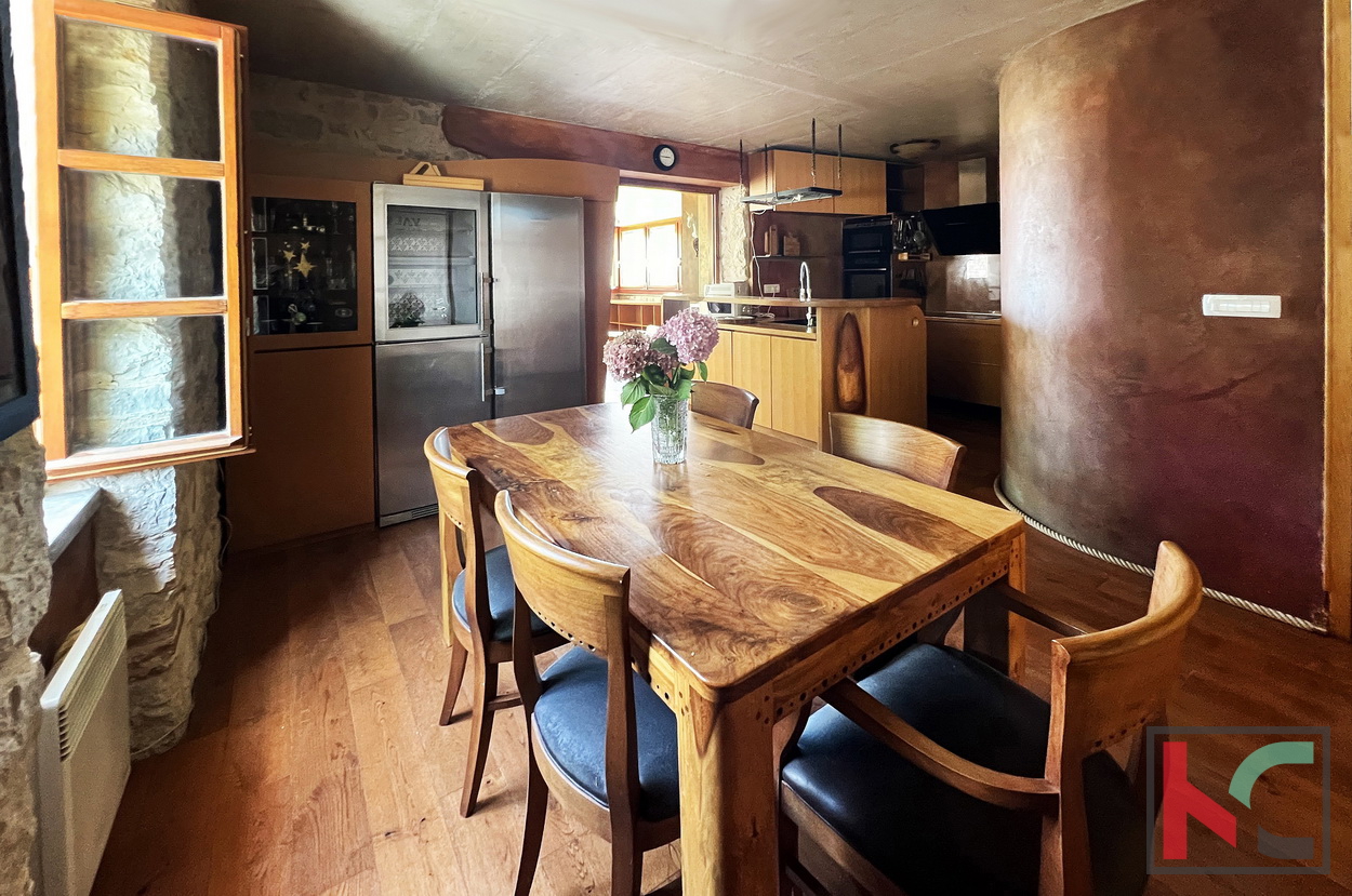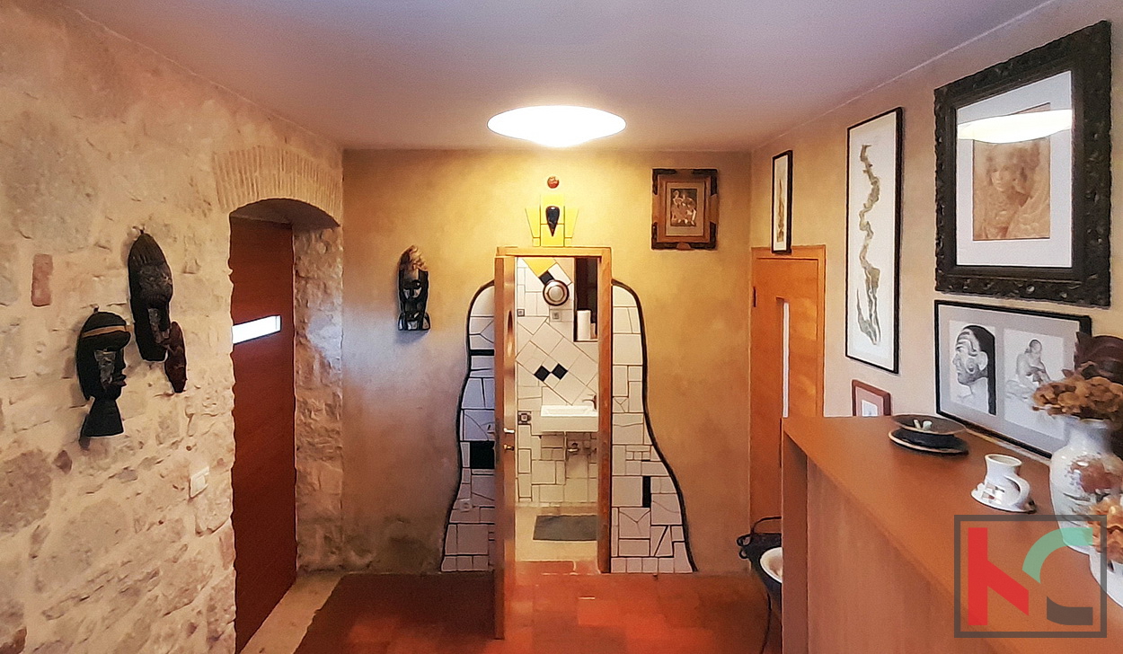 Funtana je šarmantno ribarsko mjesto smješteno između Poreča i Vrsara, poznato po opuštenoj mediteranskoj atmosferi, uređenim plažama i vrhunskoj gastronomskoj ponudi. Idealna je za miran obiteljski život tijekom cijele godine, ali i kao atraktivna turistička destinacija s velikim interesom gostiju tijekom sezone. Blizina mora, kampova, biciklističkih staza i svih potrebnih sadržaja čini Funtanu izvrsnim izborom za stanovanje, odmor ili investiciju u turistički najam. Na prodaju je obnovljena stambeno poslovna dvojnica (nekada dvije kuće) smještena u samom centru Funtane, na iznimno atraktivnoj lokaciji koja omogućuje lagodan život na korak od svih sadržaja – trgovina, restorana, mora i svakodnevnih potreba. Rekonstruirana je po restauratorskim principima i pretvorena u samostojeću kuću pri čemu je zadržan duh tradicijske građanske kuće sa naglaskom na atraktivni izgled interijera i eksterijera. Prednost ove kuće su dva odvojena ulaza u stambeni i poslovni dio. Sam stambeni dio ima ulaz sa malog atraktivnog dvorišta na istočnoj strani raspoređeno u tri etaže (pr+kat+pot) od ukupno 145 m2. Sastoji se od ulaznog dijela, stepeništa, kuhinje sa blagovaonom iu komunikaciji sa dnevnim boravkom, toalet, spavaće sobe te u potkrovlju još dvije spavaće sobe i kupaonica. Posebnu vrijednost stambenog prostora ima prostrani dnevni boravak koji je u potpunosti ostakljen, okupan prirodnim svjetlom tijekom cijelog dana. Iz boravka se pruža prekrasan, otvoren pogled koji prostoru daje osjećaj prozračnosti, topline i ugode – idealno mjesto za opuštanje i druženje. U prizemlju nalazi studio apartman od 29m2 registriran kao poslovni prostor i može se koristiti za neke tihe djelatnosti (ali nije uvjet) što omogućava ugodan obiteljski život uz mogućnost dodatnih prihoda na istoj lokaciji. Sav namještaj i detalji interijera specijalno su izrađeni te su sastavni dio cijene, osim privatnih memorabilija i umjetnina. Kuća odiše ugodnom atmosferom te predstavlja odličan izbor za obiteljski život, kuću za odmor ili investiciju u turistički najam, upravo zahvaljujući svojoj centralnoj lokaciji i specifičnom ambijentu. Ova jedinstvena nekretnina odiše arhitektonskim štihom staro/nove Istarske tradicije te je unikatna prilika za nove vlasnike sa umjetničkim senzibilitetom.