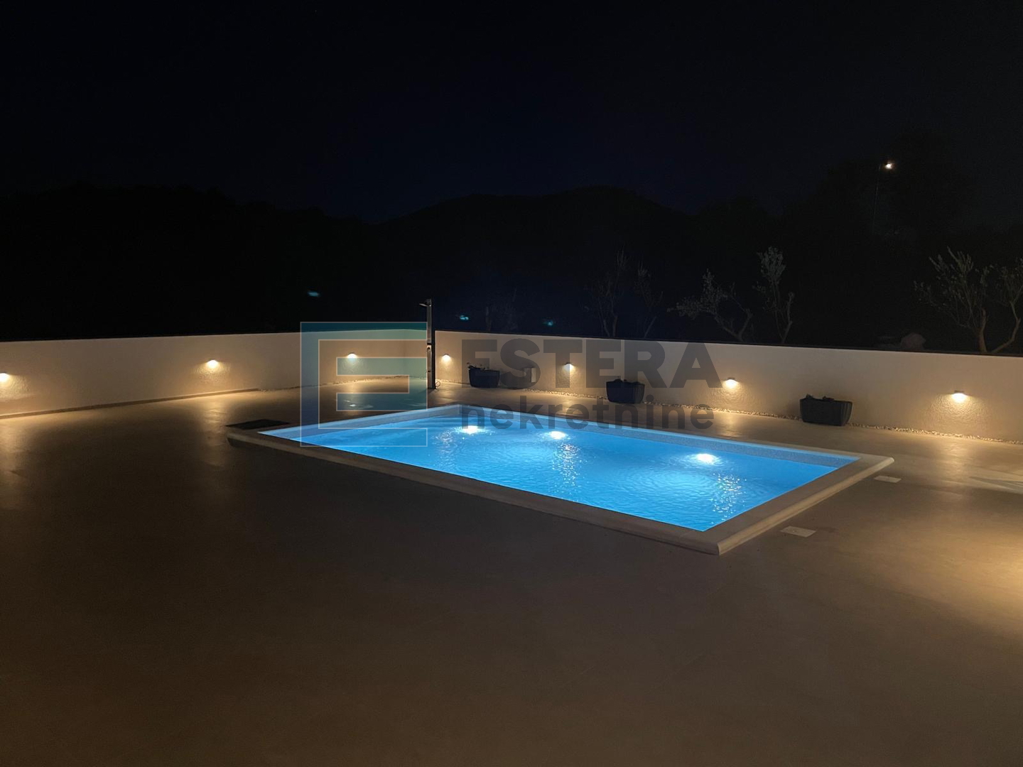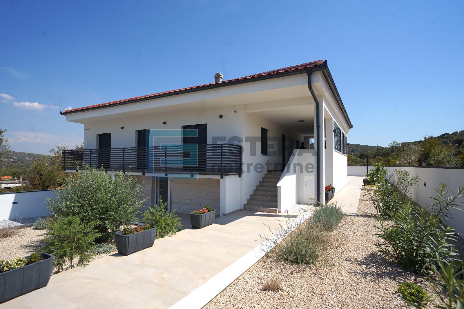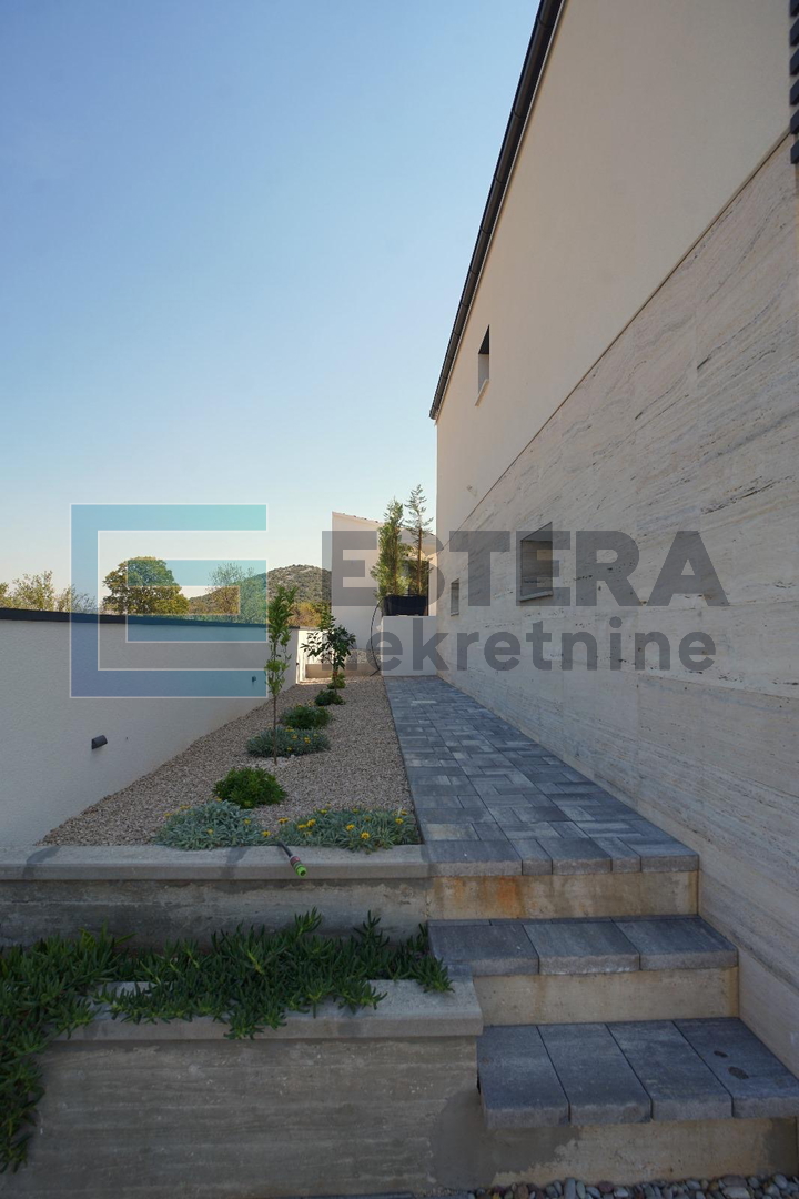 Luksuzna novogradnja na prodaju – moderna visokoprizemnica izgrađena . godine na zemljištu od 789 m2, smještena u mirnom i prirodnom okruženju u malom mjestu Donja Jagodnja, udaljenom samo 12 km od Biograda. Osnovne značajke: - Tlocrtna površina kuće: 162 m2 - Neto korisna površina: 92 m2 - Sastav: prostrani open space dnevni boravak s kuhinjom i blagovaonicom, 3 spavaće sobe (jedna s vlastitom kupaonicom), dodatna kupaonica, WC, natkrivena terasa s roletama i mogućnošću zatvaranja - Svi prozori s komarnicima i klimatizirani prostori - Potpuno namještena luksuznim namještajem i novim aparatima Vanjski sadržaji: - Velika ograđena i uređena terasa s inox stepenicama za pristup dvorištu - Dvorište od 582 m2 sa mediteranskim biljem i voćkama - Prekrasan veliki bazen od 45 m2 s instalacijama za grijanje i sunčalištem - Konoba s zidanim roštiljem i nadstrešnicom, pogodna za druženje - Garaža za dva automobila Prednosti: - Mir i privatnost daleko od gradske gužve, a istovremeno blizu svih sadržaja za svakodnevni život ili odmor - Moderna, potpuno opremljena i klimatizirana kuća - Idealan prostor za obitelj ili kao ljetna oaza Ako tražite spoj udobnosti, luksuza, mira i prirode, ova kuća je idealna za vas! Za više informacija ili dogovor razgledavanja, kontaktirajte nas na + Zorica Šarić!